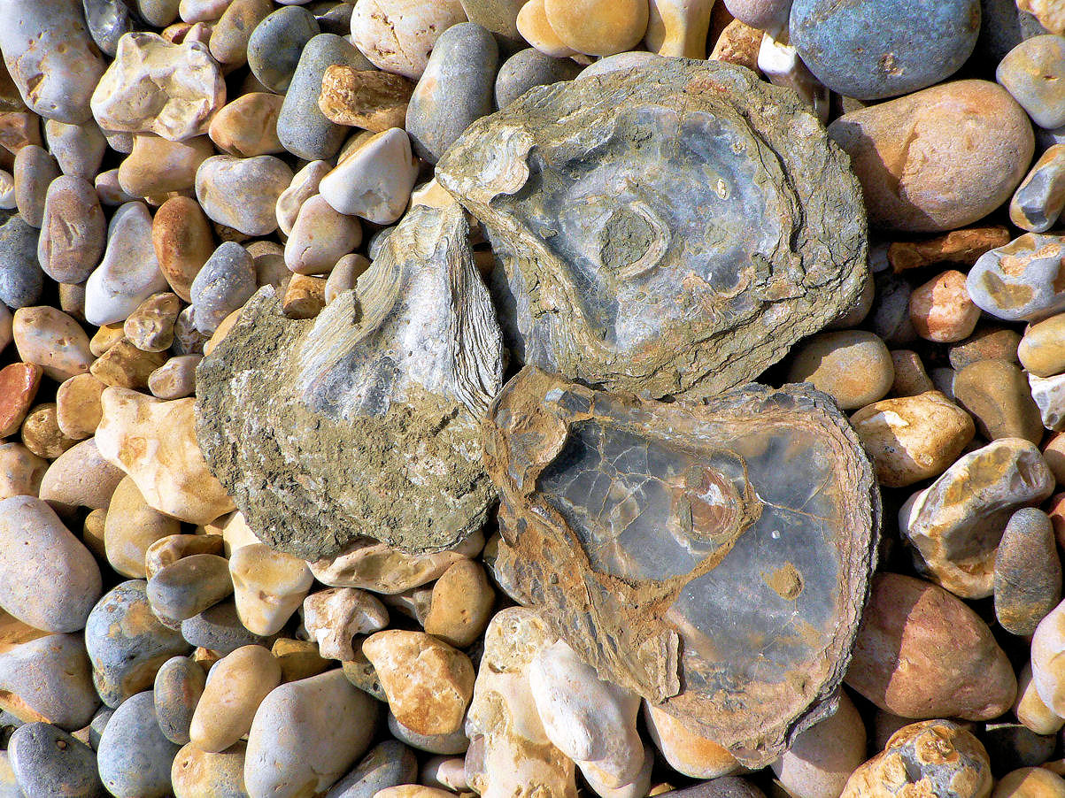 Fossil oyster shells from Ringstead Bay, Dorset, UK, – part of the Jurassic Coast