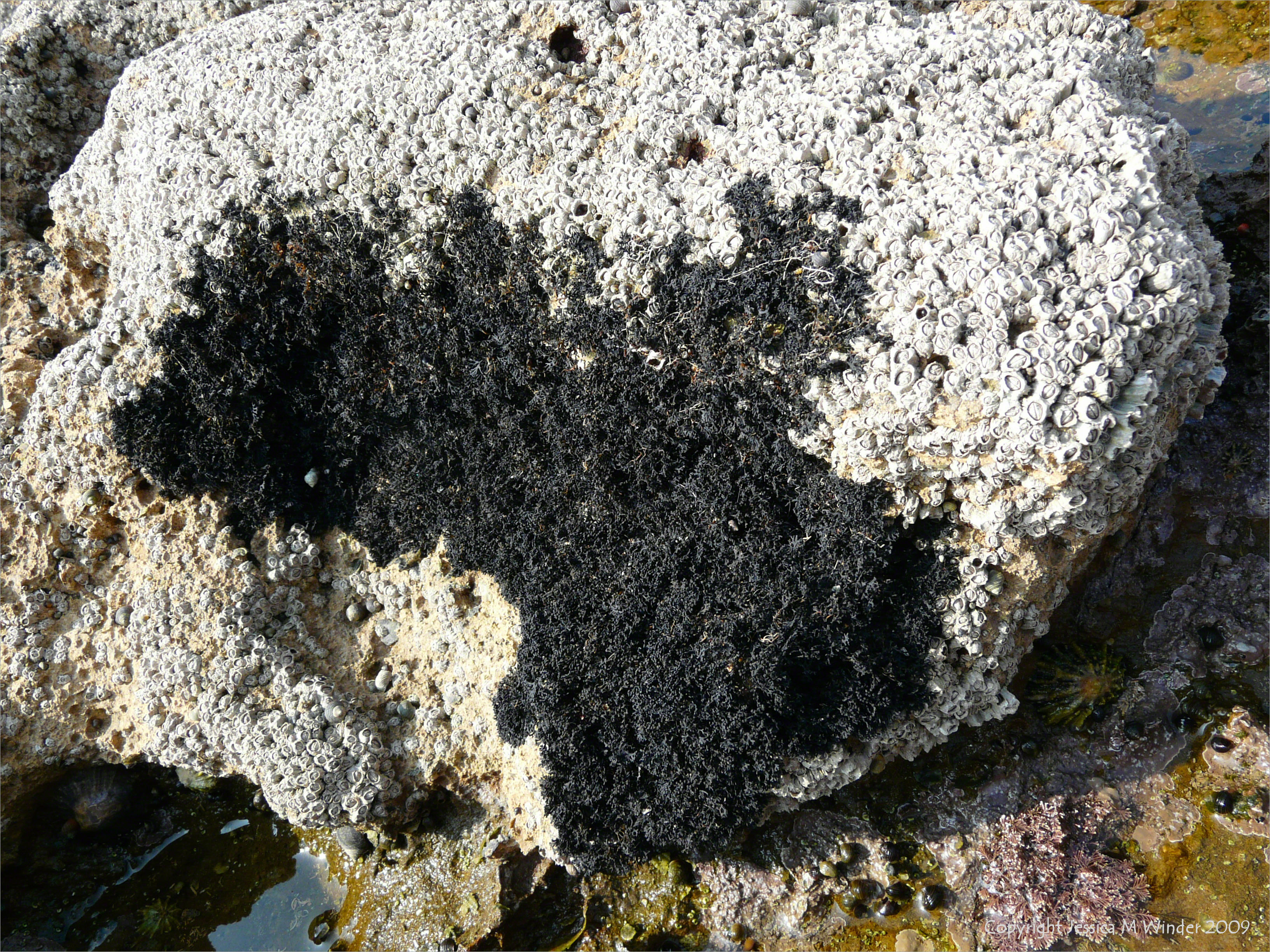 P1060623PygmyLichenRingstead Black patches of Pygmy Lichen on rocks at Bran Point in Ringstead Bay, Dorset, England 2009