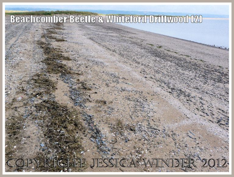 This is part of the strandline at Whiteford Sands, close to the location of the driftwood under which the Strandline Beetles are living.