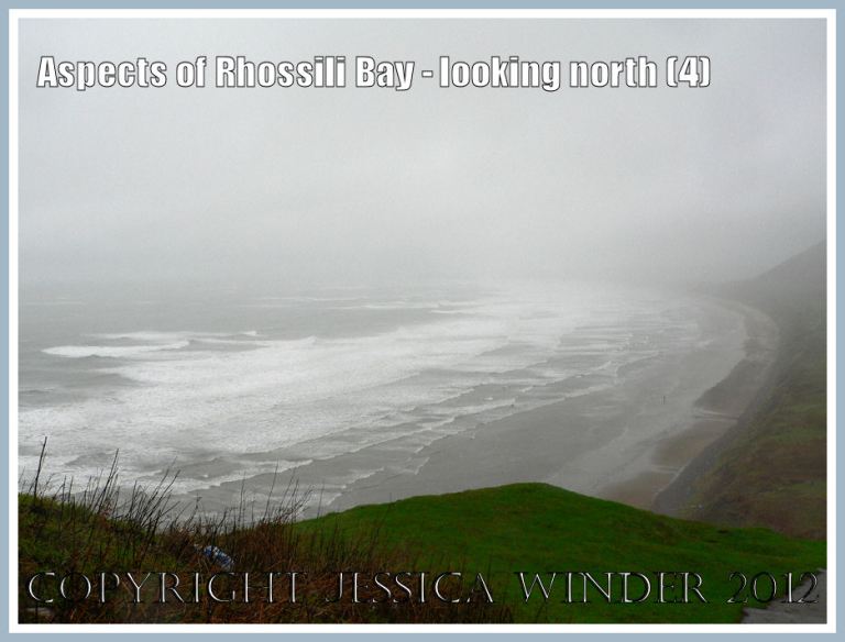 Mid-winter view looking north along Rhossili Bay, Gower, 1211 hours 29th December 2006. A wonderfully awful day; the whole beach and Down swallowed up by cloud; driving wind and rain; bitter cold; wild foaming surf; difficult to even stand up on the seashore; a few crazy people taking their life into their own hands by kite surfing and actually flying over the waves; what tremendous exhilaration!
