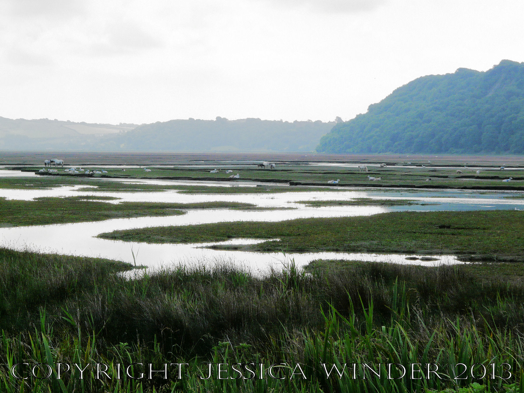 Saltmarsh Sheep at Whiteford (12) – Flooded drainage channel at high spring tide on Landimore Marsh at Whiteford, Gower, South Wales, June 2009. P1110646aBlog12