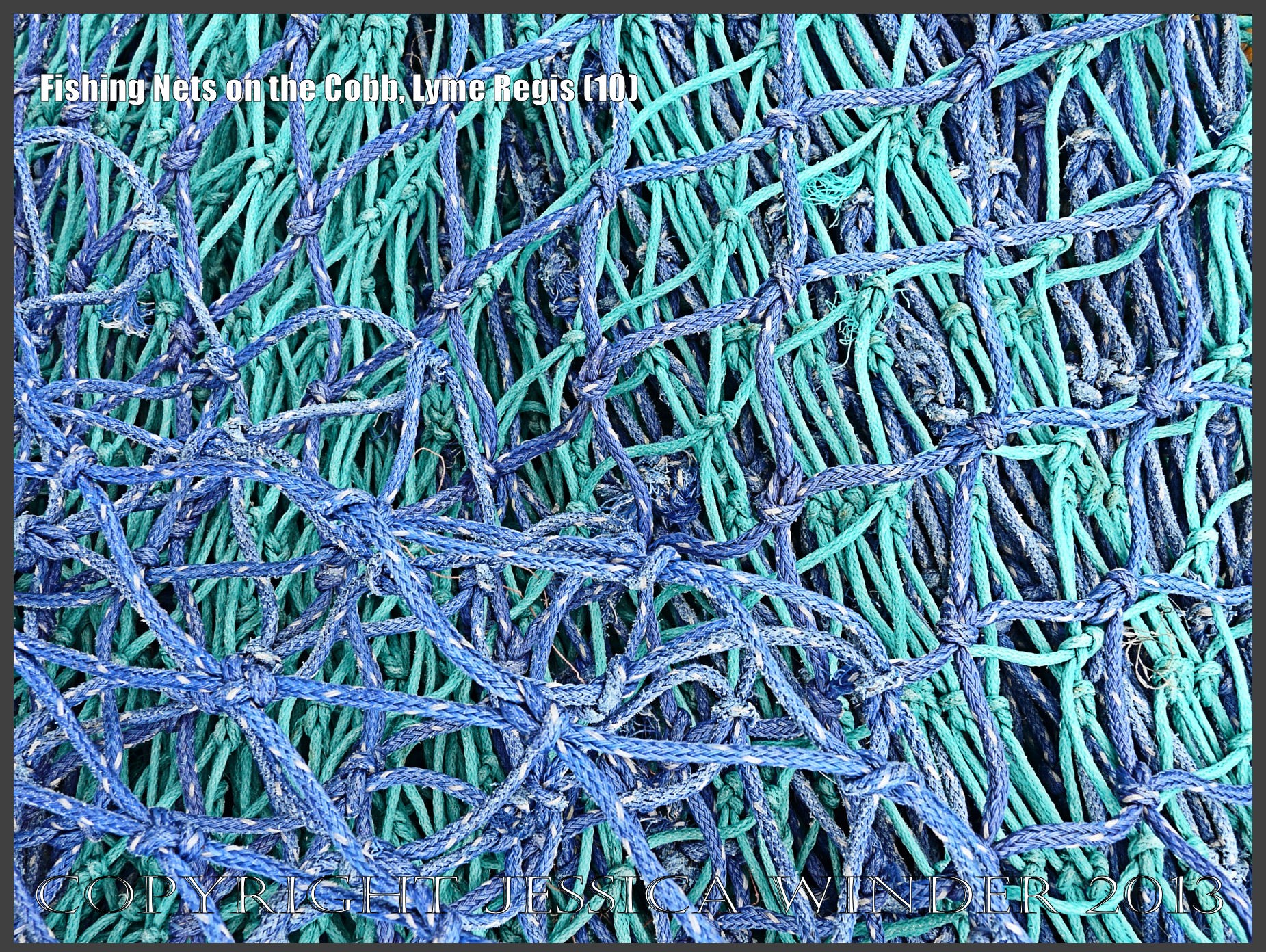 Fishing Nets on the Cobb, Lyme Regis (10) – Close-up image of some of the many fishing net colours, textures and patterns on the Cobb at Lyme Regis, Dorset, UK August 2009. P1140955aBlog10