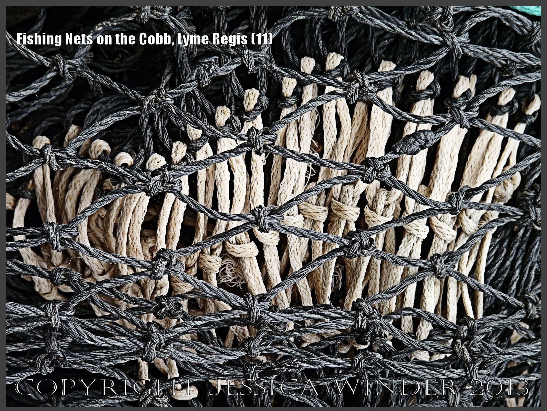Fishing Nets on the Cobb, Lyme Regis (11) – Close-up image of some of the many fishing net colours, textures and patterns on the Cobb at Lyme Regis, Dorset, UK August 2009. P1140958aBlog11
