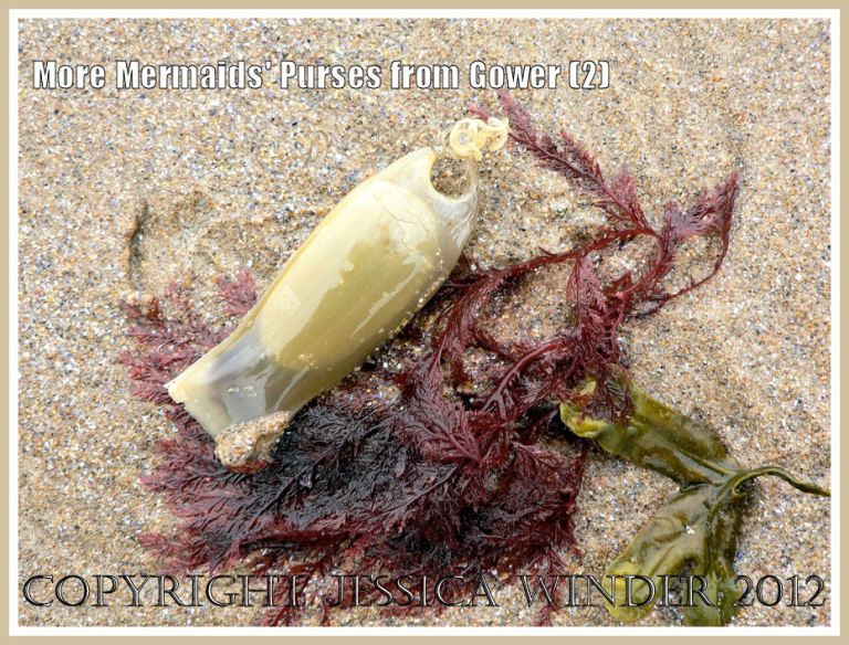 Just a few more pictures of colourful Mermaids’ Purses (Common Dogfish egg cases) seen on Gower beaches.
