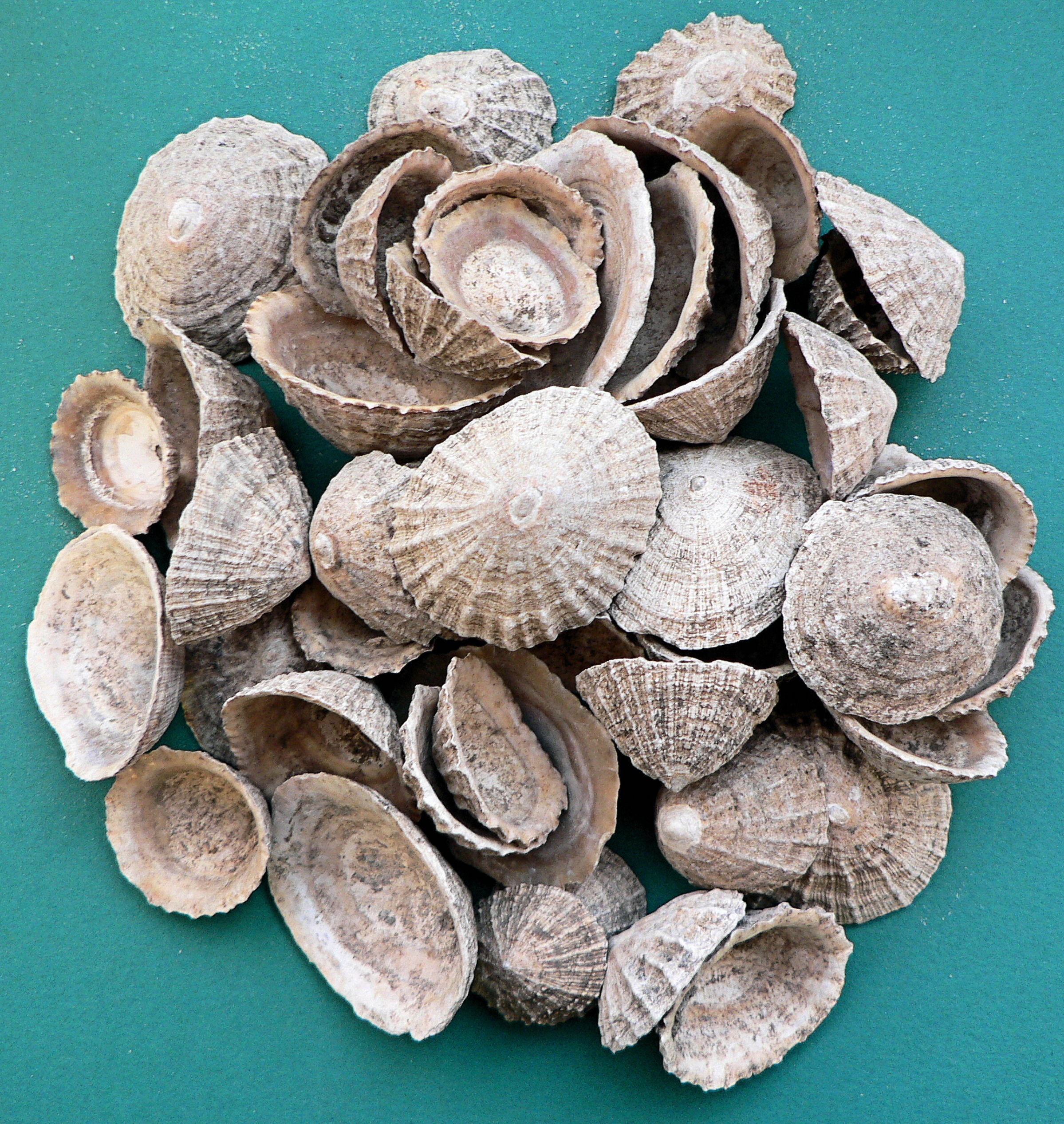 P1110314a Ancient limpet shells from an archaeological excavation of a Medieval rubbish pit in an east coast UK town.