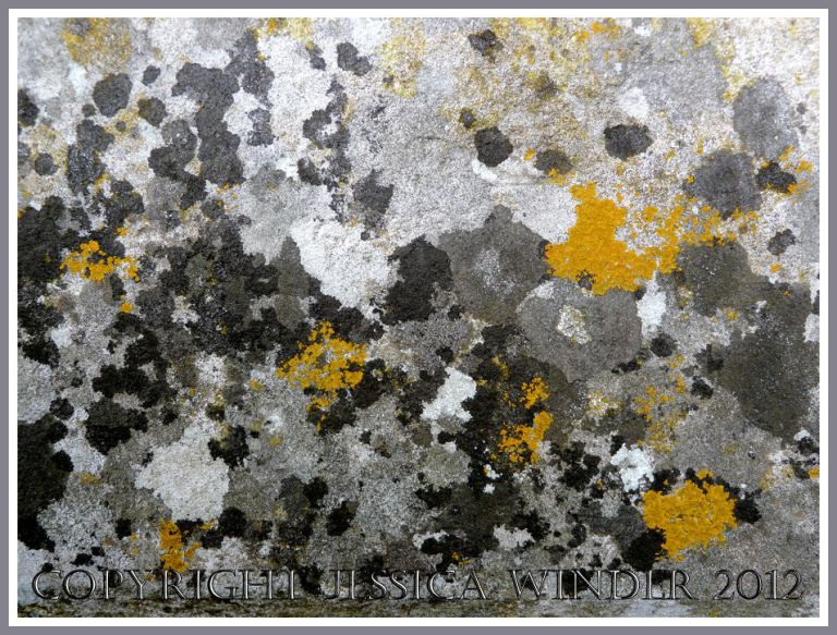 I live in a beautiful part of the world and I am lucky enough to be surrounded by peaceful countryside. I do not have to venture far from my front door to discover interesting colours, patterns and textures in nature. Here are a few of the things I saw on my walk today. Dandelion clocks in the local nature reserve; tadpoles at the edge of the village pond; lichen on a headstone; lichen on a beech tree; bark on a horse chestnut tree; and lichen on the the village hall.