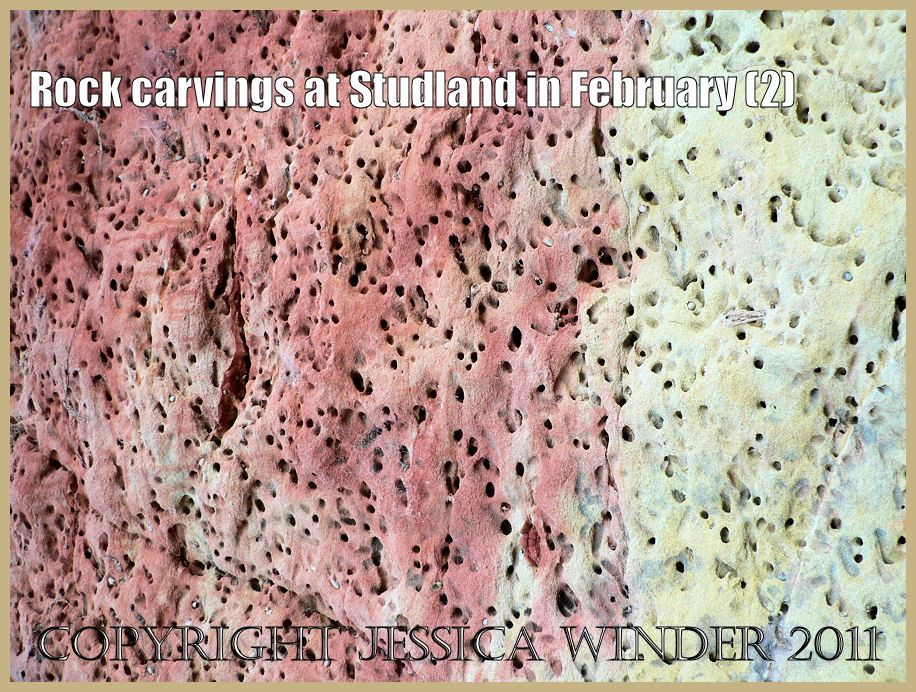 I wonder how many Valentine’s Day lovers have carved their name over the years on this rock? This cliff can be seen at the western end of Studland beach in Dorset, UK (part of the designated World Heritage Jurassic Coastline). The strata are composed of multi-coloured sandstone. The reds, pinks, and yellows of the layers result from various degrees of iron-staining in the sediments.