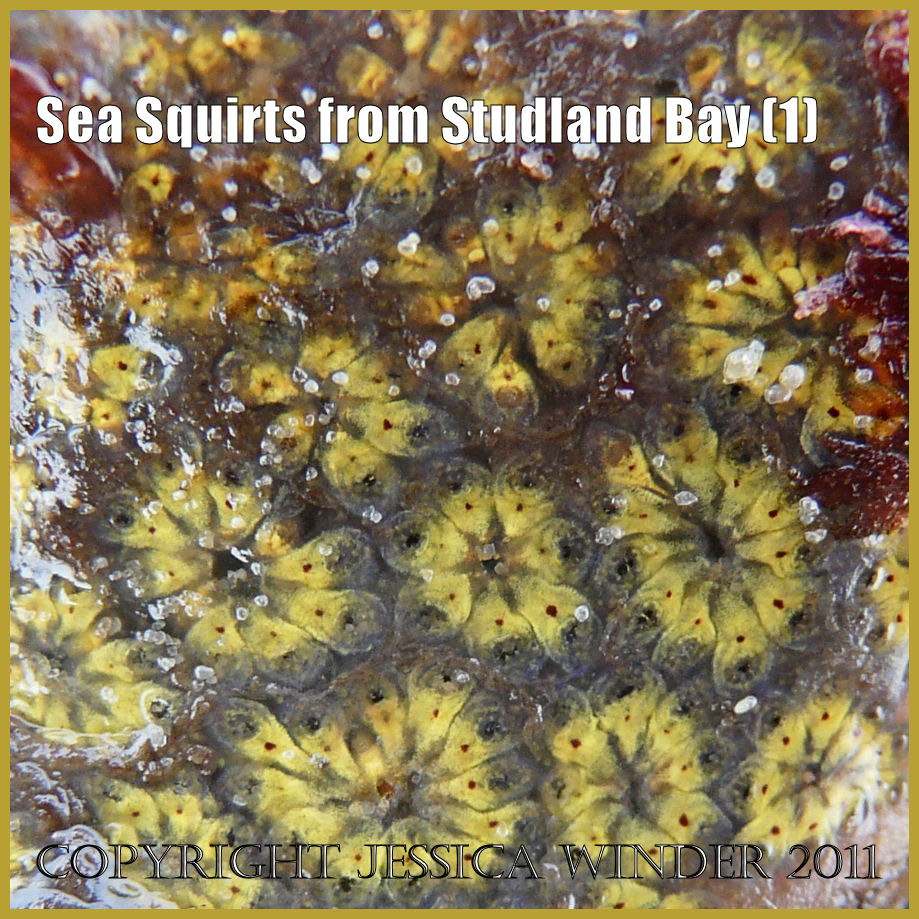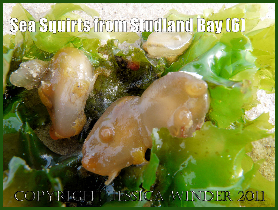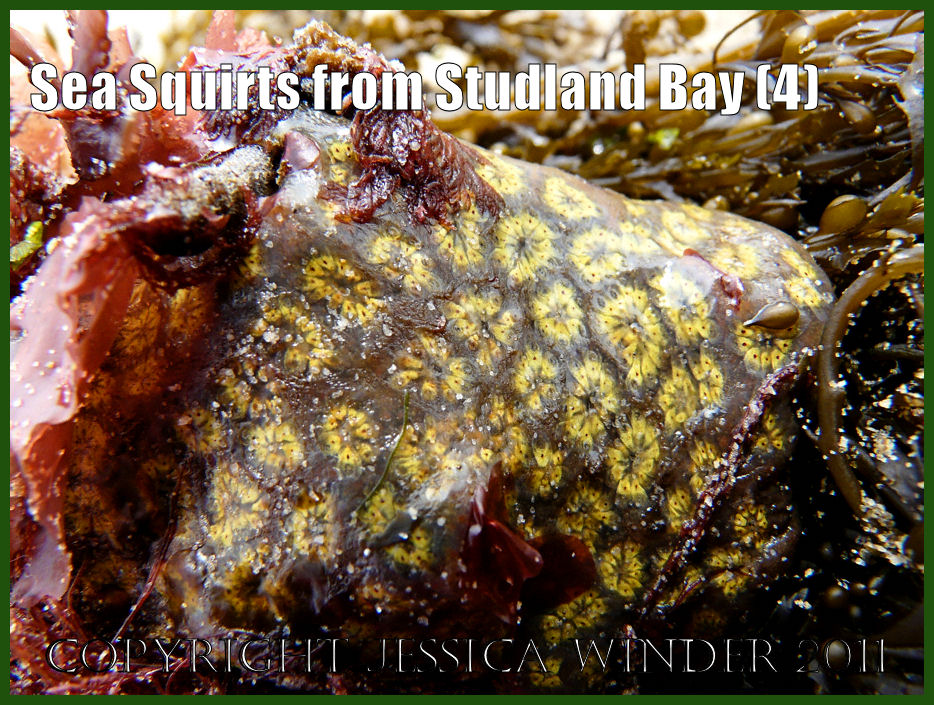 This colonial or group-living sea squirt was growing on the stem of some Japweed [Sargassum muticum (Yendo) Fensholt] that was washed up by the sea onto the sandy shore of Studland Bay in April. Red seaweeds were also growing on the stem.