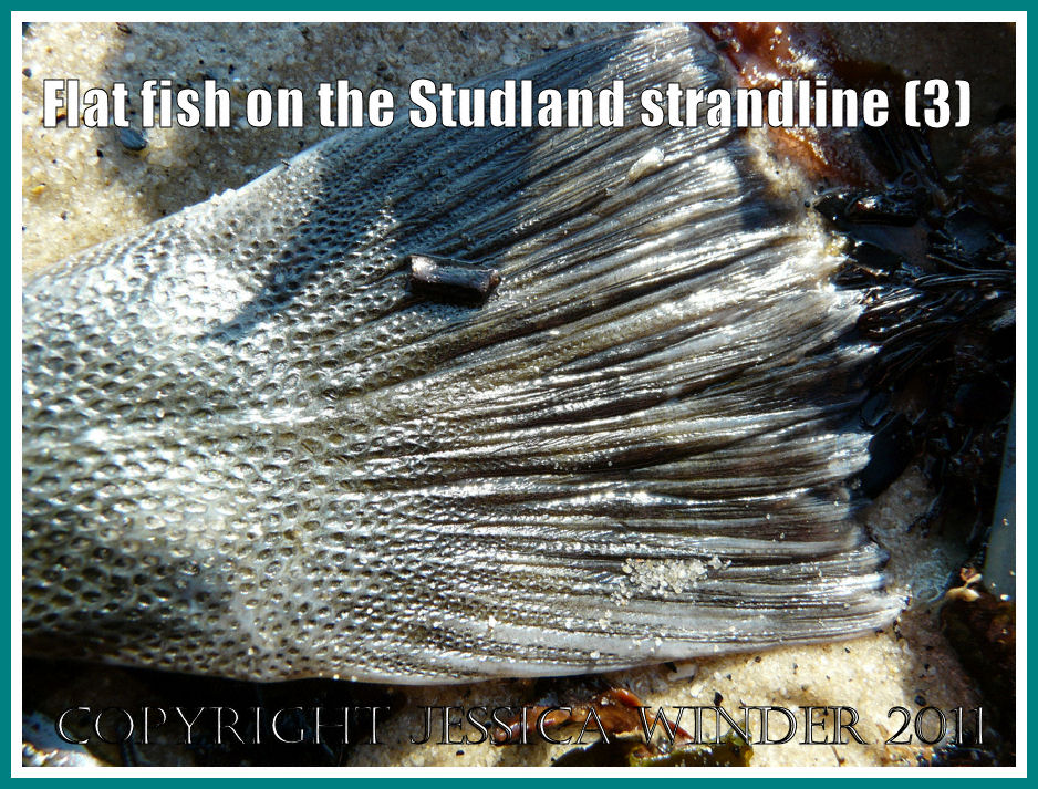 The underside of the caudal fin of a flat fish found washed up on the strandline at Studland Bay, Dorset, UK - part of the Jurassic Coast (8)
