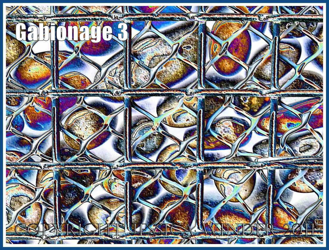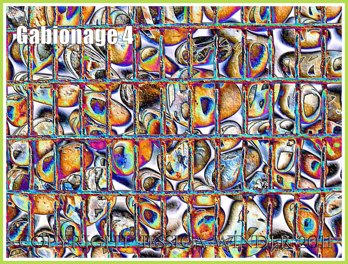 In these pictures I have had a bit of fun by digitally altering photographs of the gabions to produce colourful abstract images.