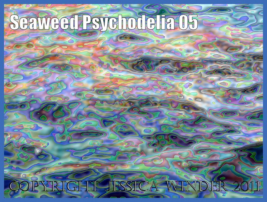 Just some fun with digital photographic manipulation to create abstract art – based on pictures of Thong Weed floating beneath the surface of undulating waves. I thought the results of the digital effects resembled the brightly coloured psychodelic images that were a frequent feature of the 1960’s.