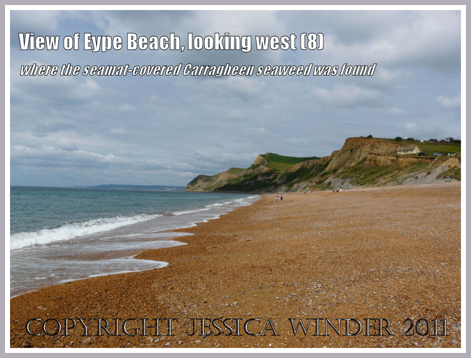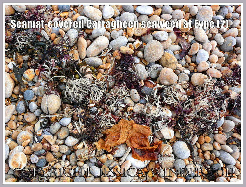There didn’t seem to be much seaweed washed up on the beach when I visited Eype in the summer – just a narrow band of dried red algae forming a strandline high on the shingle seashore. It was comprised almost entirely of Irish Moss, also called Carragheen (Chondrus crispus Stackhouse). This type is well known for its culinary and medical uses.