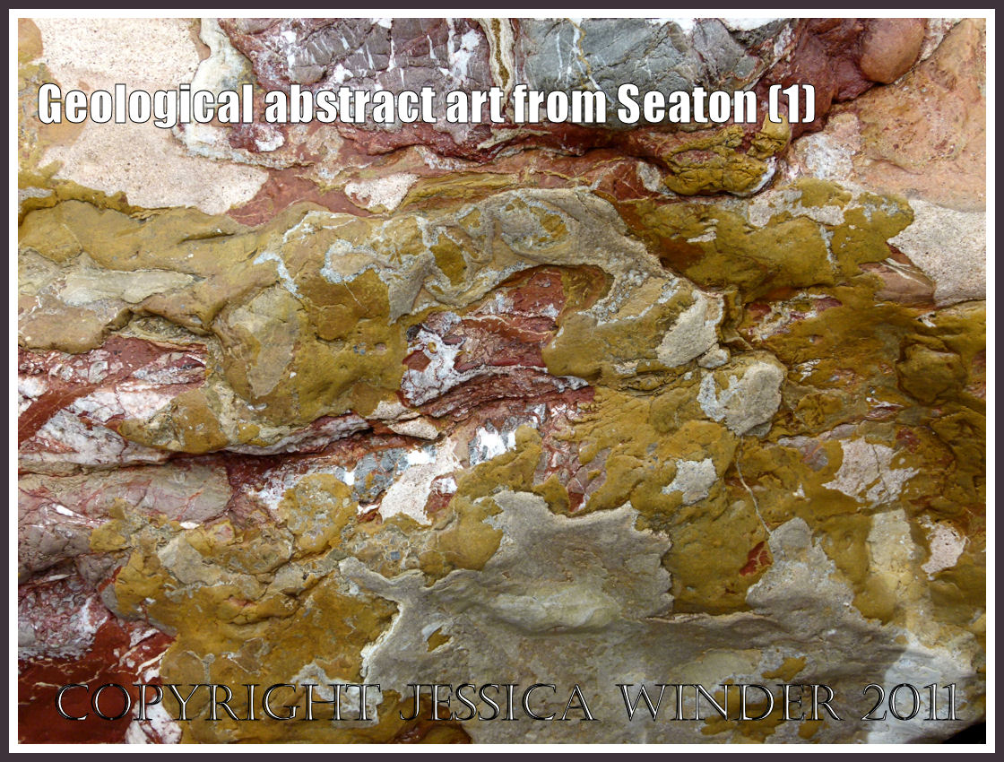 Brilliant colours, intriguing patterns, and strange textures, characterise some of the large boulders put on the beach at Seaton in Devon, U.K. to counteract the erosional effects of the pounding waves on the soft red cliffs. If you look at them closely, with an artist’s eye for composition, these naturally occurring designs seem to take on the appearance of some wonderful abstract art, don’t you think?
