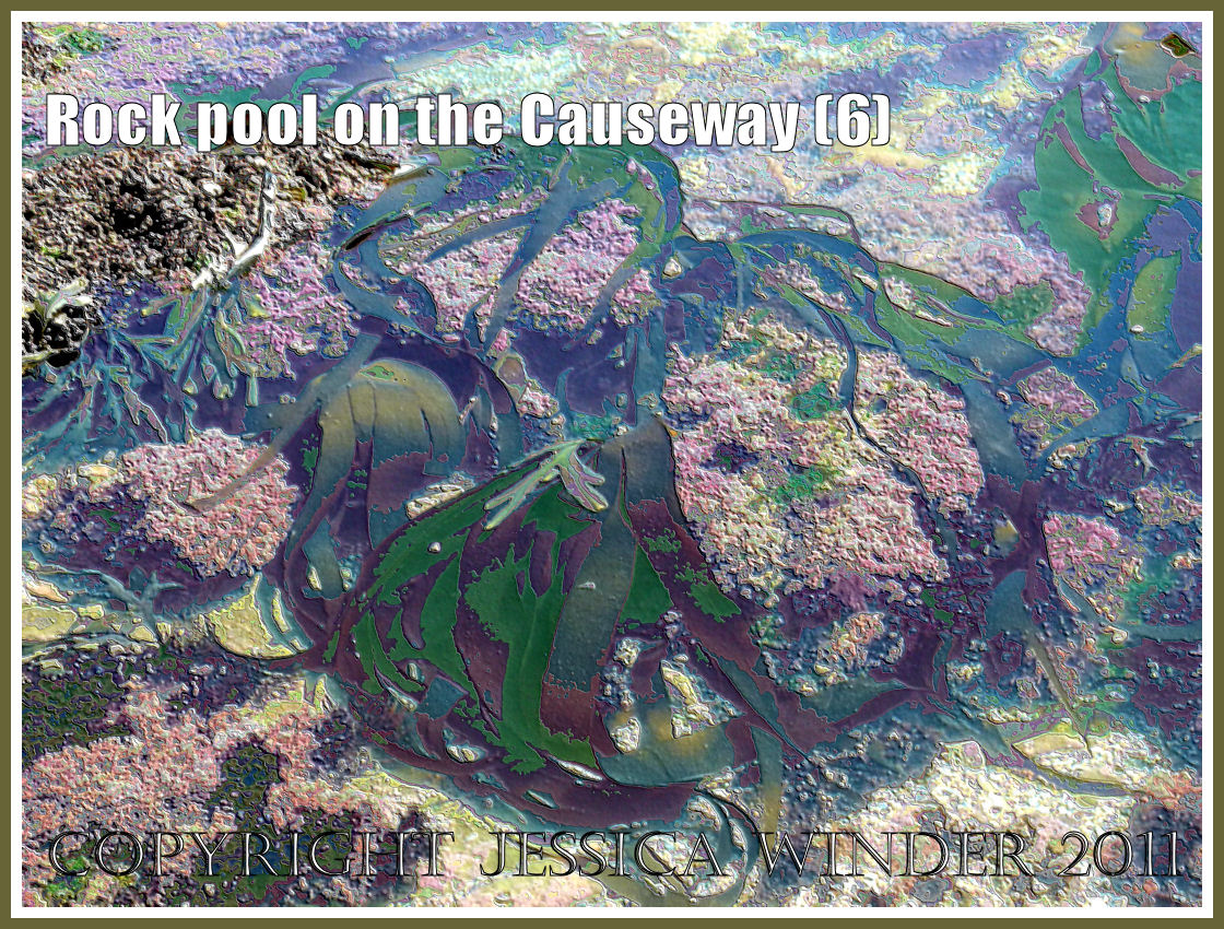In the bright sunlight of an early summer morning, a multi-coloured vista stretches far before the eye. The still water of the tide pools reflects the almost cloudless pale blue sky and contrasts with the rough grey rocks with their occasional patches of orange and pink. The seaweeds, like the purple coral weed and olive green kelps and fucoids, cover the low tide exposed surfaces and underwater, too. Limpets and winkles graze the algae-coated stone, joined in their shallow submarine world by shrimps, crabs, and fishes. The whole horizon a patchwork of biodiversity and colour.