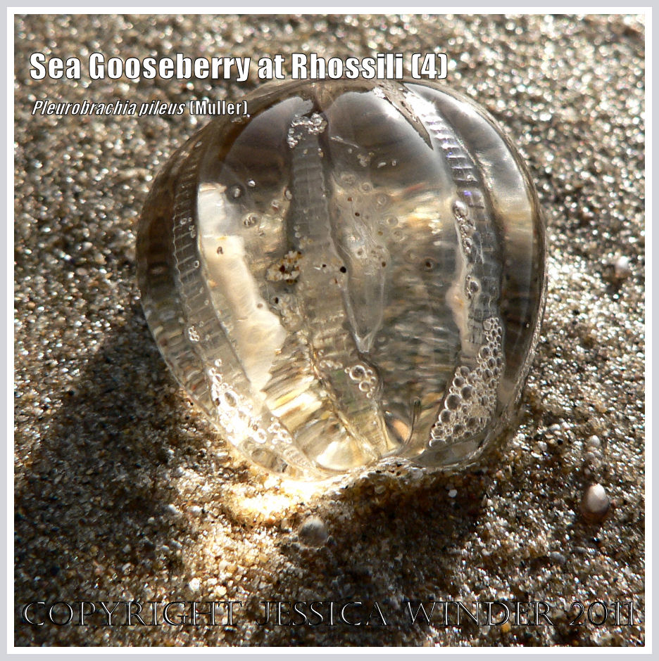 We have many types of jellyfish that wash ashore and that I see while kayaking, but I have never seen one that was so intricately textured on its outside, especially for its size. The gooseberry truly appears much more jewel like than what I am used to. Beautiful find. Hopefully I will see some in person one day