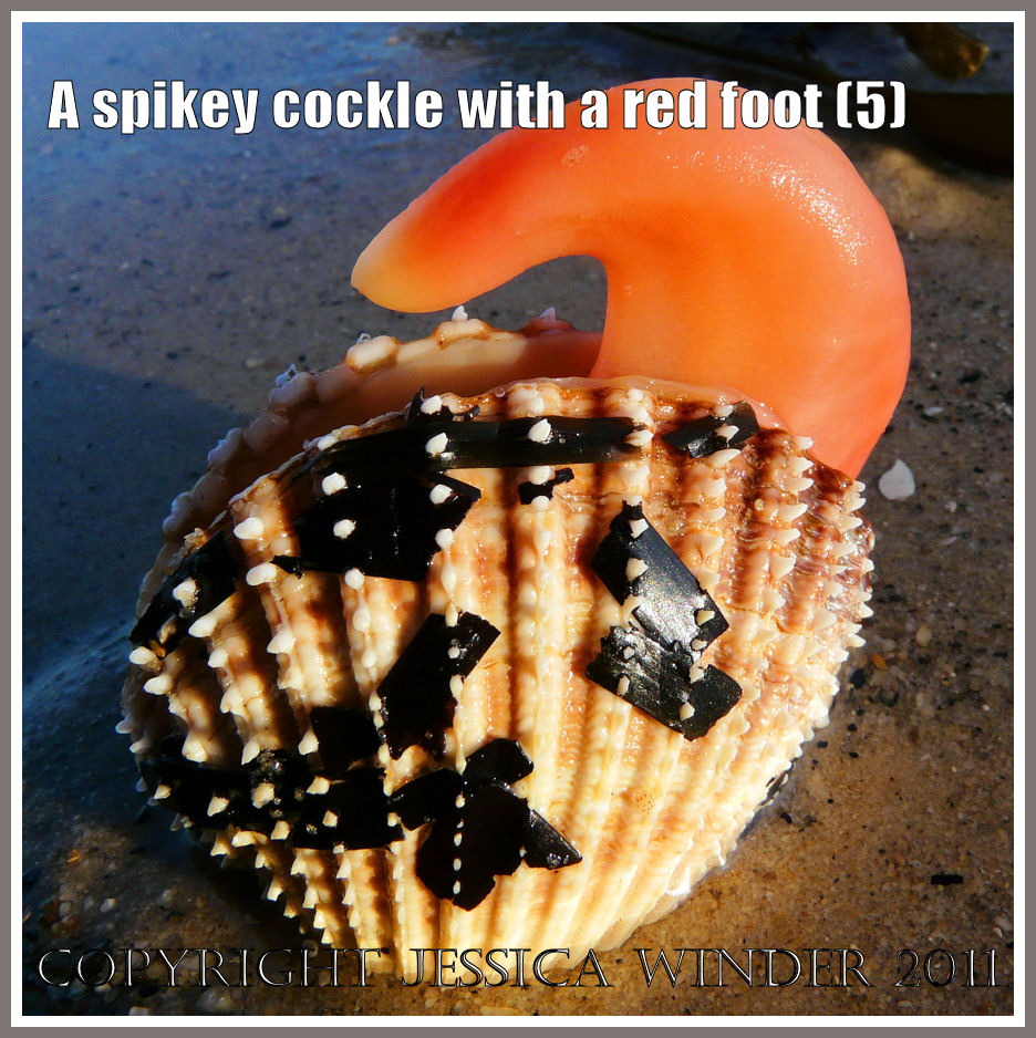 A Prickly Cockle with the red foot arching out of the gaping shell at Studland Bay, Dorset, UK - part of the Jurassic Coast (6)