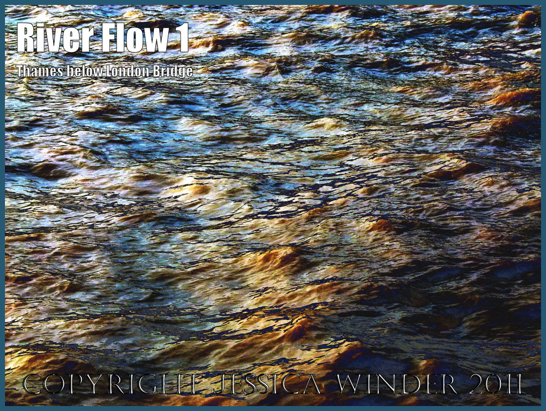 Flowing river: Impression of the ripples and reflections in the fast-flowing water of the River Thames just below London Bridge - digitally enhanced photograph (2)