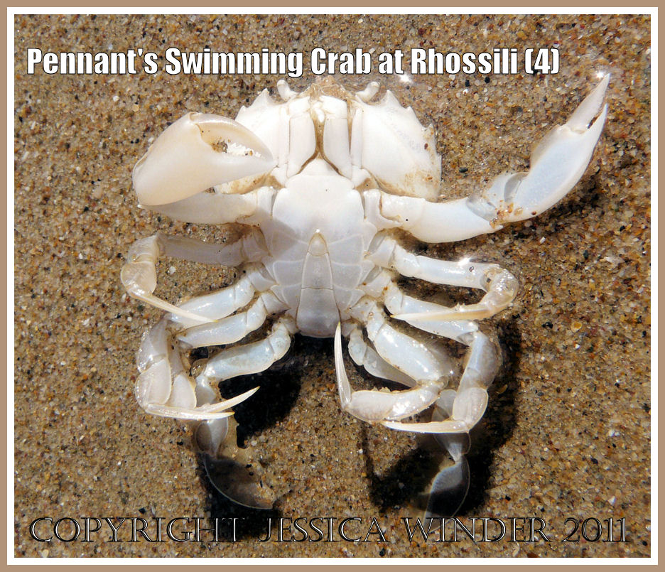 Rinsed off in some standing water on the shore, you can see a few more details which allows me to suggest it is Pennant’s Swimming Crab, Portumnus latipes (Pennant).