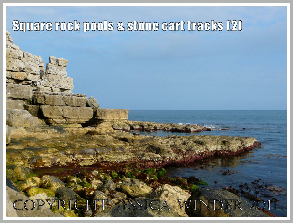 View of ruts carved into the rock platform for hauling carts of quarried stone from cliff face to waiting boats at Winspit, Dorset, UK - part of the Jurassic Coast (5)