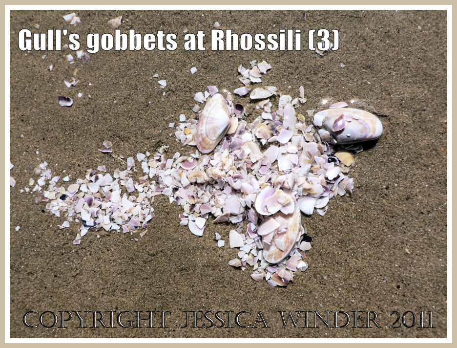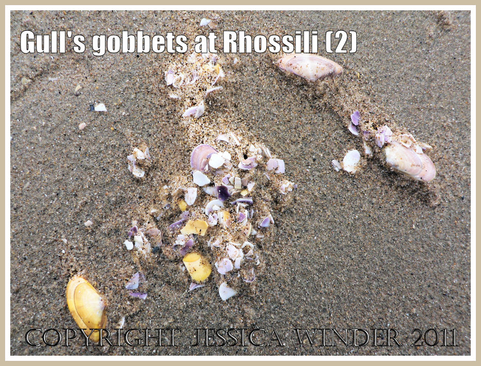 Photographs 1 to 3 are examples of these gull gobbets with mostly Banded Wedge Shells. All three pictures were taken on 9th August 2006.