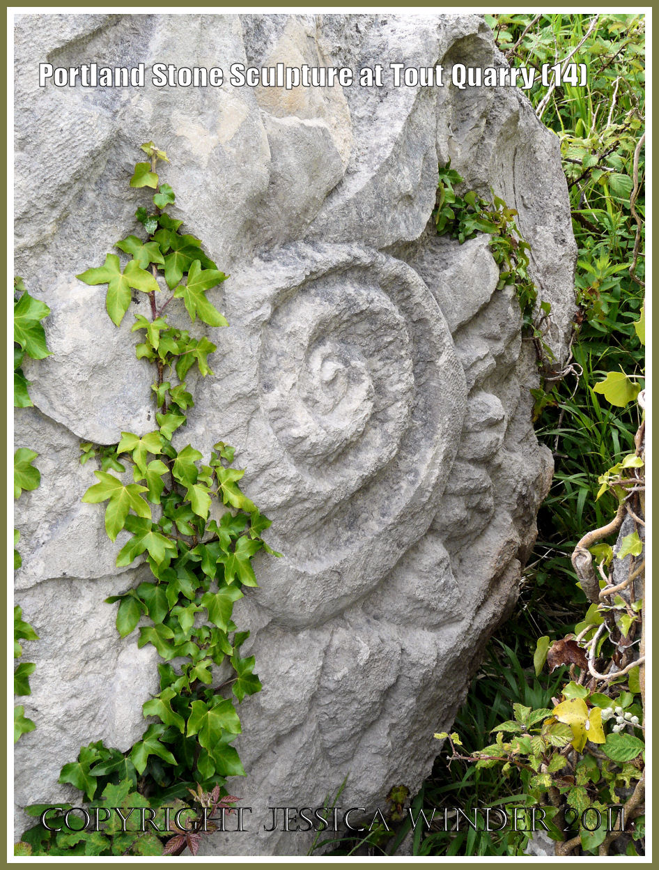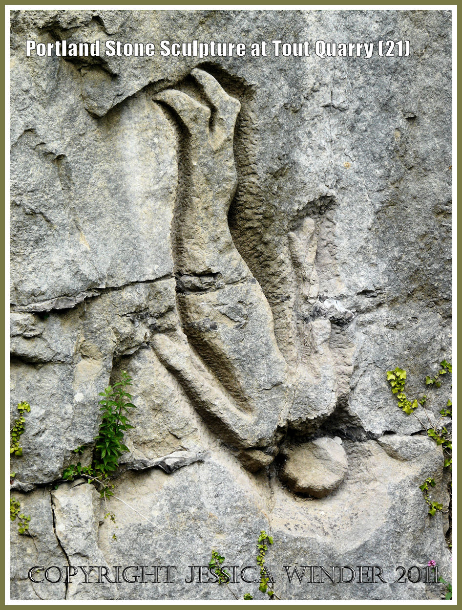Another selection of the incredible sculptures that have been carved in situ from Portland limestone in Tout Quarry on the Isle of Portland, Dorset. Some abstract, some figurative, and others perhaps symbolic. The place is open to the public and free of charge.