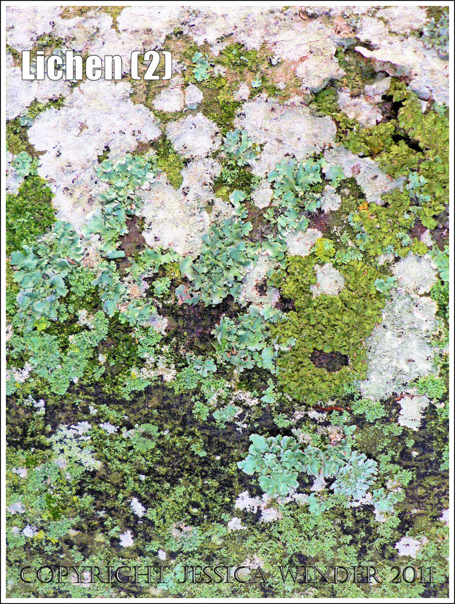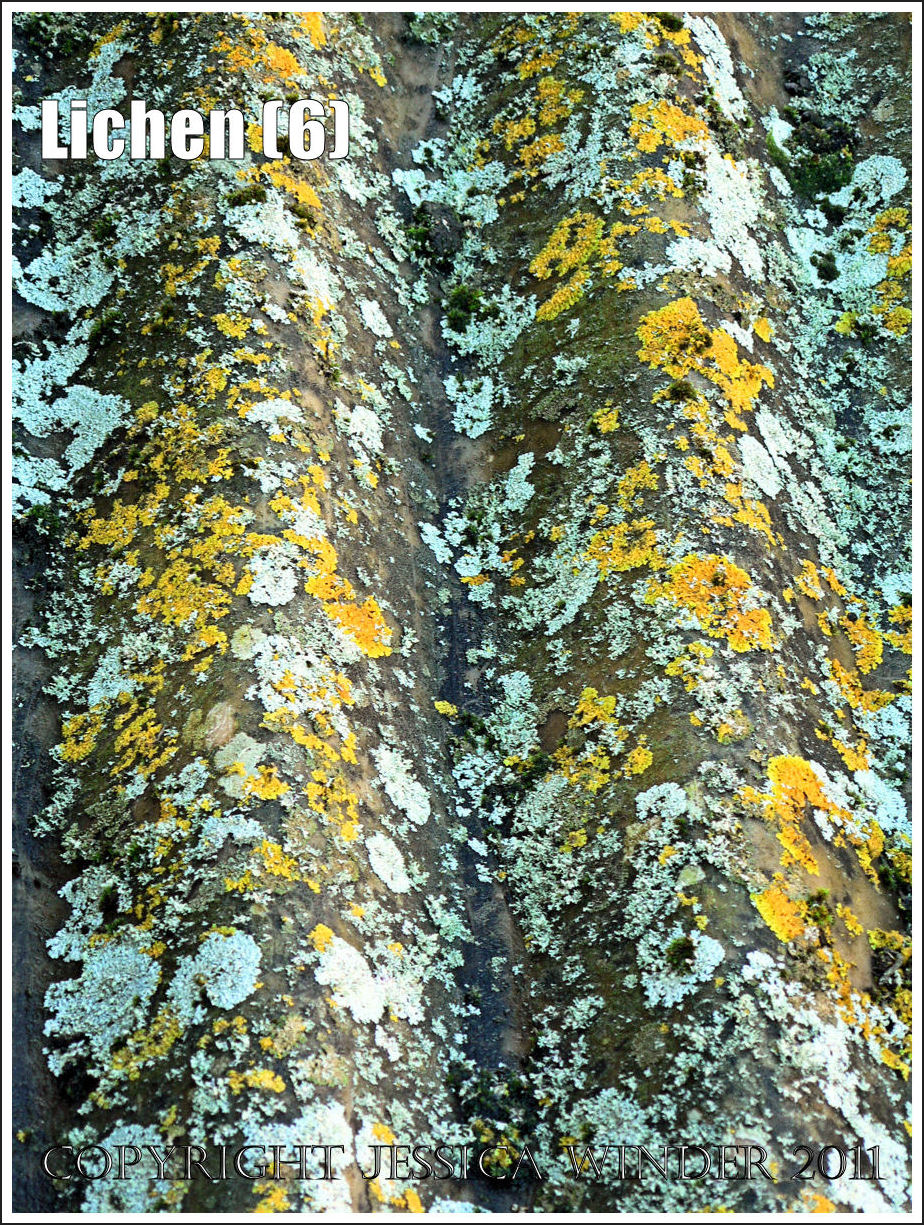 Lichens are a strange kind of organism that is partly algae and partly fungi. They exhibit a great deal of variability in shape and colour and are found in all sorts of places – from the splash-zone rocks of the seashore, to high altitude boulders, to living and dead trees and wood, and man-made objects of almost every conveivable material – provided the environment is right. They are supposed to favour clean, fresh air. Each species has a defined habitat preference.