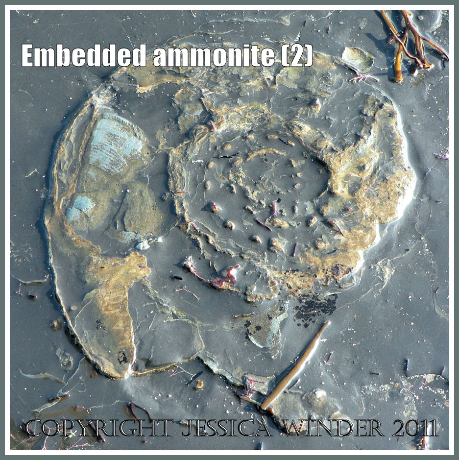 Ammonite fossil embedded in rock on the Jurassic Coast, Dorset, UK - a spiral pattern in nature (2)