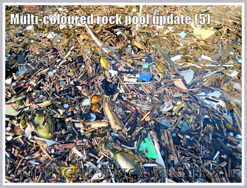 Previously I have talked about a small rock pool at Rhossili that had filled up  with  multi-coloured pieces of plastic probably arriving at this one small area of the beach from hundreds, even thousands, of miles away. Bright coloured fragments and pellets of plastic were also observable in the regurgitated remains spewed up by seabirds on the beach. That was back in the summer 2009. I have been keeping an eye on the pool to see what its fate might be.
