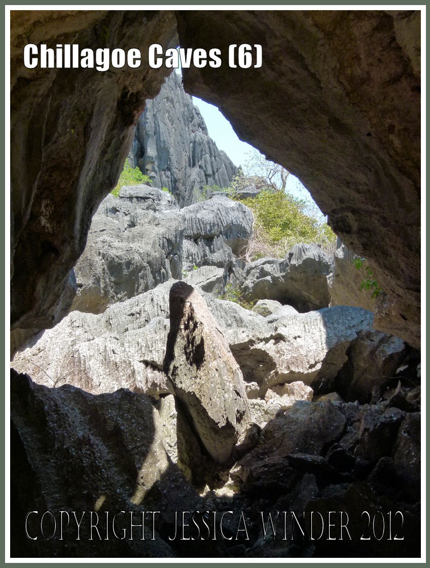 When cave roofs collapse and light floods into the caves, a thin layer of microscopic green algae grows on the cave decorations. Most of my cave interior images from Royal Arch caves were taken where this had occurred. Picture (2) shows the limestone rocky tower beneath which the Royal Arch caves had formed. Royal Arch, Donna and Trezkin Caves can only be viewed with a guide. For the more adventurous, brave, and very fit, The Archways, Pompeii and Bauhinnia Cave can be explored without a guide and many personal challenges.