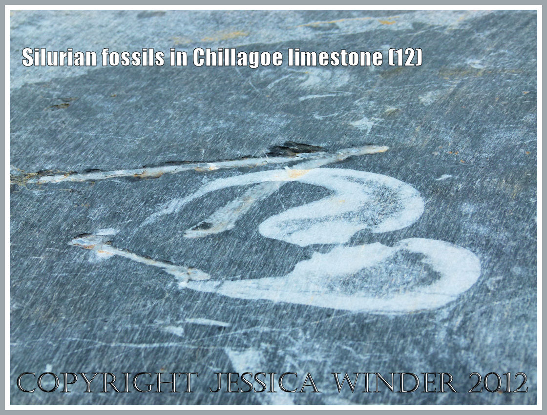 I didn’t see all the types of fossil known to occur here; neither can I now put a scientific name on the specimens I discovered. I noted cross and longitudinal sections of solitary corals – some quite large. There seemed to be a lot of colonial pipe corals – transverse sections of them en masse and lengthwise views of individual pipes. There were crinoid or sea lily stems too. In life, these resemble flowers but are really multi-armed animals of the starfish family which attach to the sea bed by a long jointed, flexible stalk. It is mostly small pieces, or a series of pieces, of the articulated stalk that have been preserved in the rock.