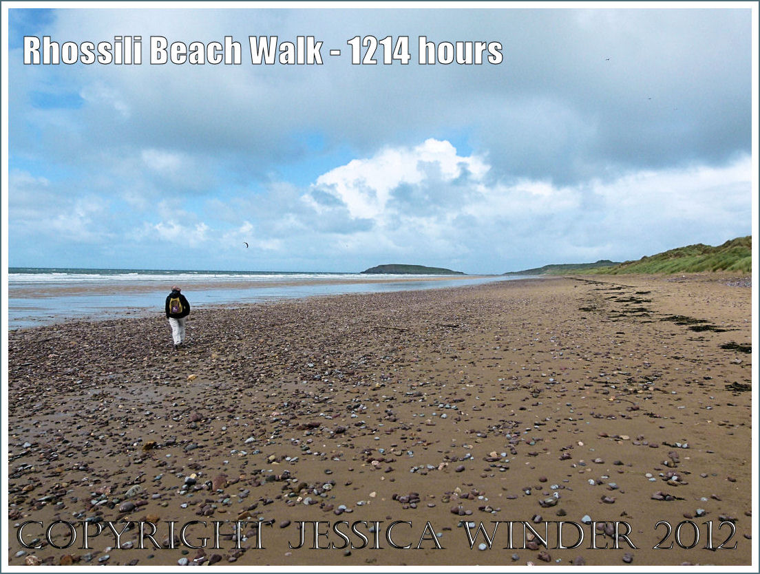 Starting with a pot of tea in Eddy’s at the Hillend Caravan and Camping Site, and cutting down through the dunes to the beach, I turned right and walked northwards towards Spaniard Rocks and the island of Burry Holms with the dune system of Llangennith Burrows on my right.