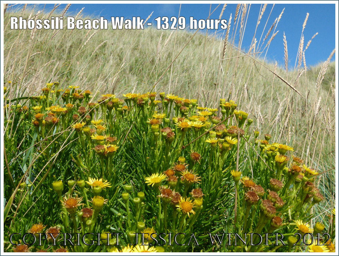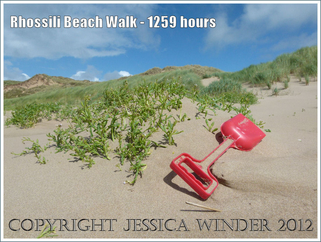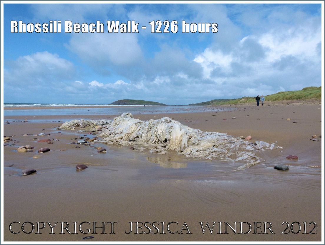 What links the following photographs is my feet! The images are in chronological order and describe some of the many delights and interesting features of a walk along Rhossili Beach in Gower – from flotsam, flowers, and fishermen, to sand patterns, sea ripples, surfers, and seashore creatures.