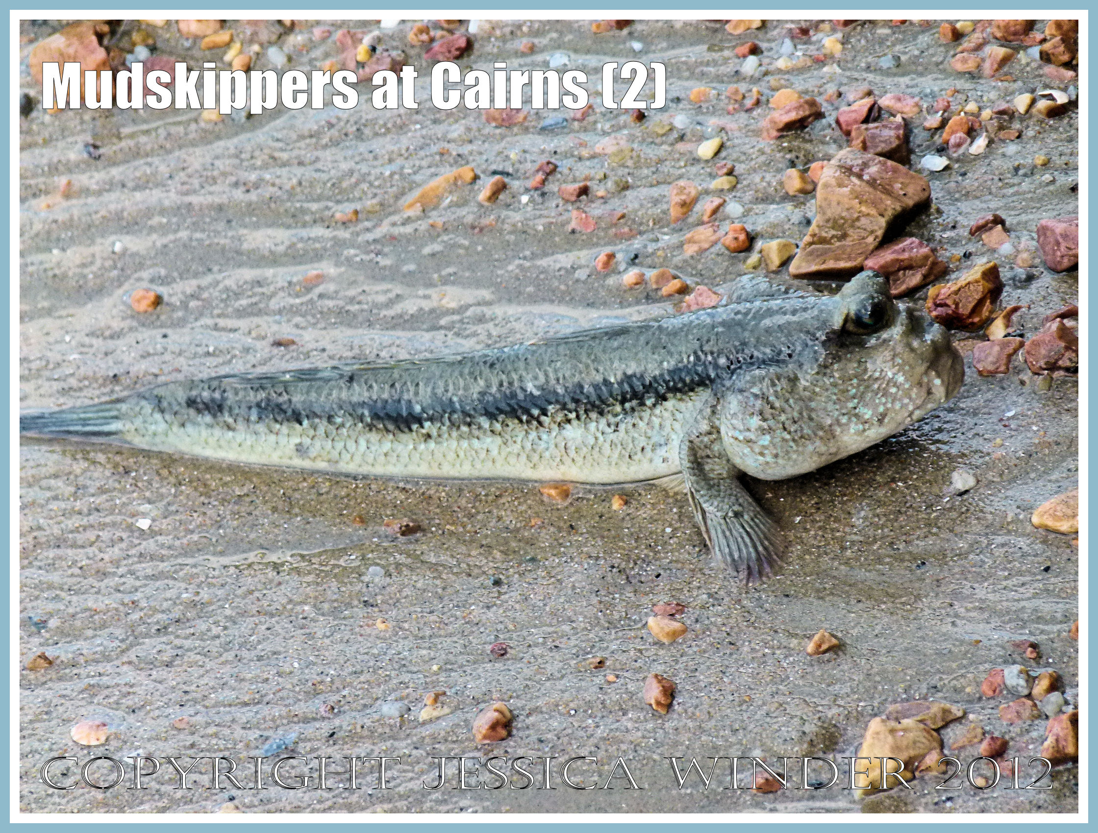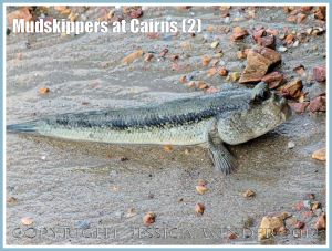 Mudskippers at Cairns (2) – Mudskipper fish out of water on the mudflats by the Cairns Esplanade, Queensland, Australia; most probably the Giant Mudskipper, Periophthalmodon freycineti. P1160875aBlog2