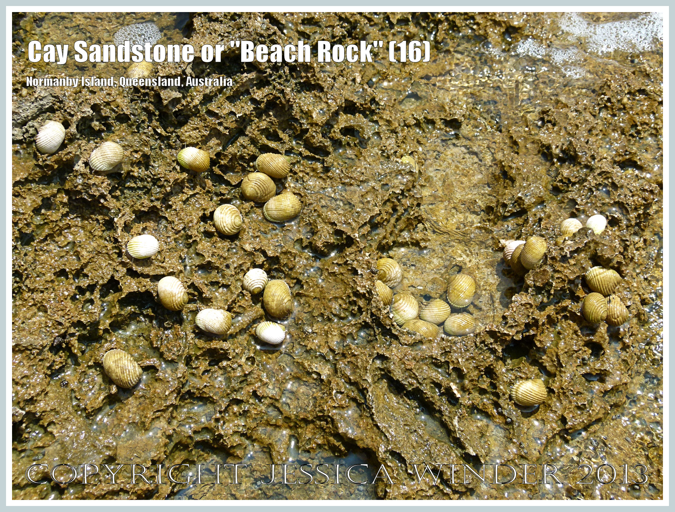Cay Sandstone or “Beach Rock” (16) – Small Nerite gastropods in an eroded hollows in recently formed Cay Sandstone or “Beach Rock” on Normanby Island, Queensland, Australia, part of the Frankland Islands group. P1180639aBlog16