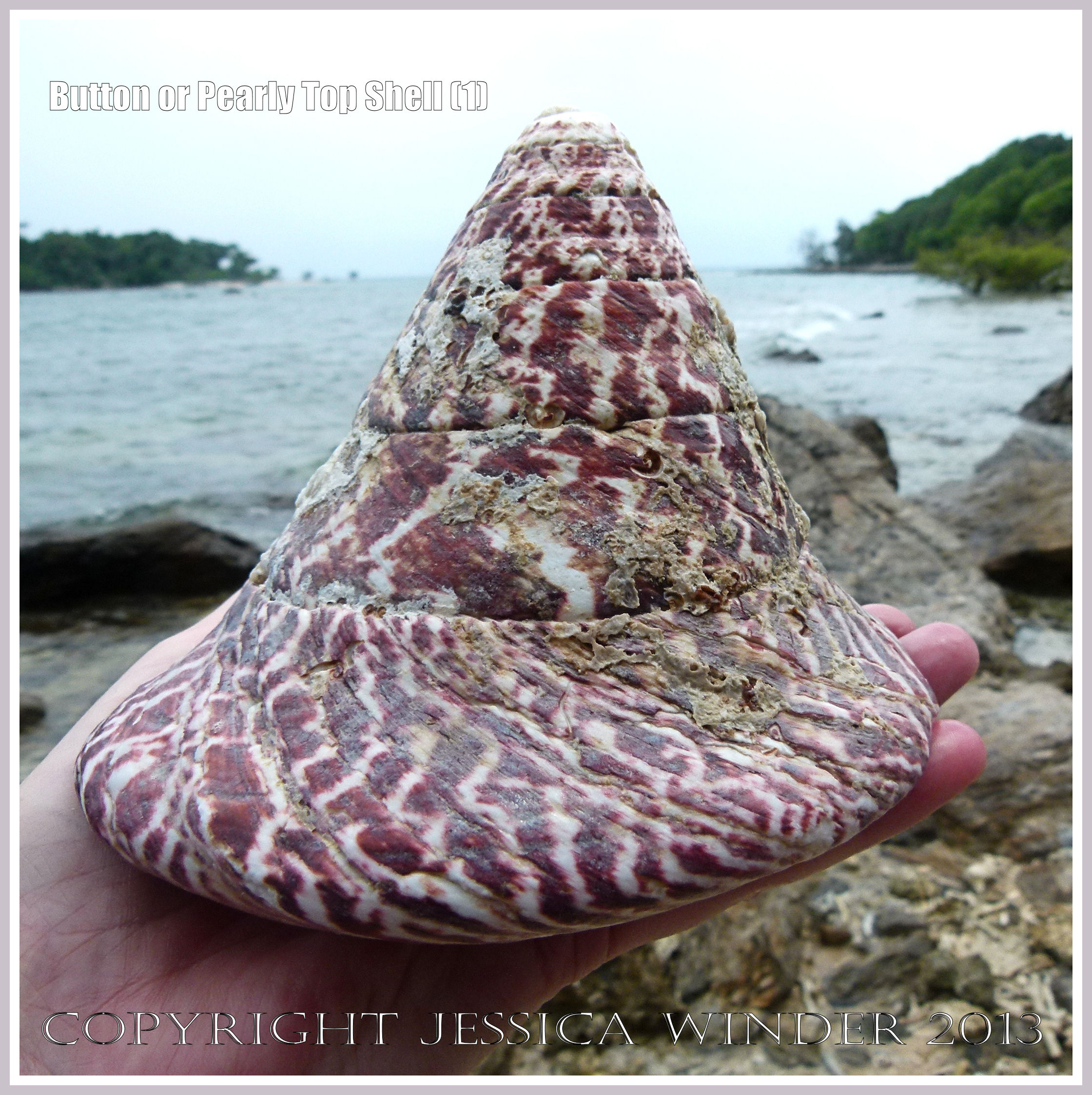 Button or Pearly Top Shell (1) – Trochus (Tectus) niloticus Linnaeus found on the shore of Normanby Island off the coast of Northern Queensland, Australia. The mother-of-pearl from this type of shell was and still is used commercially for making buttons and similar decorative objects. P1180826aBlog1