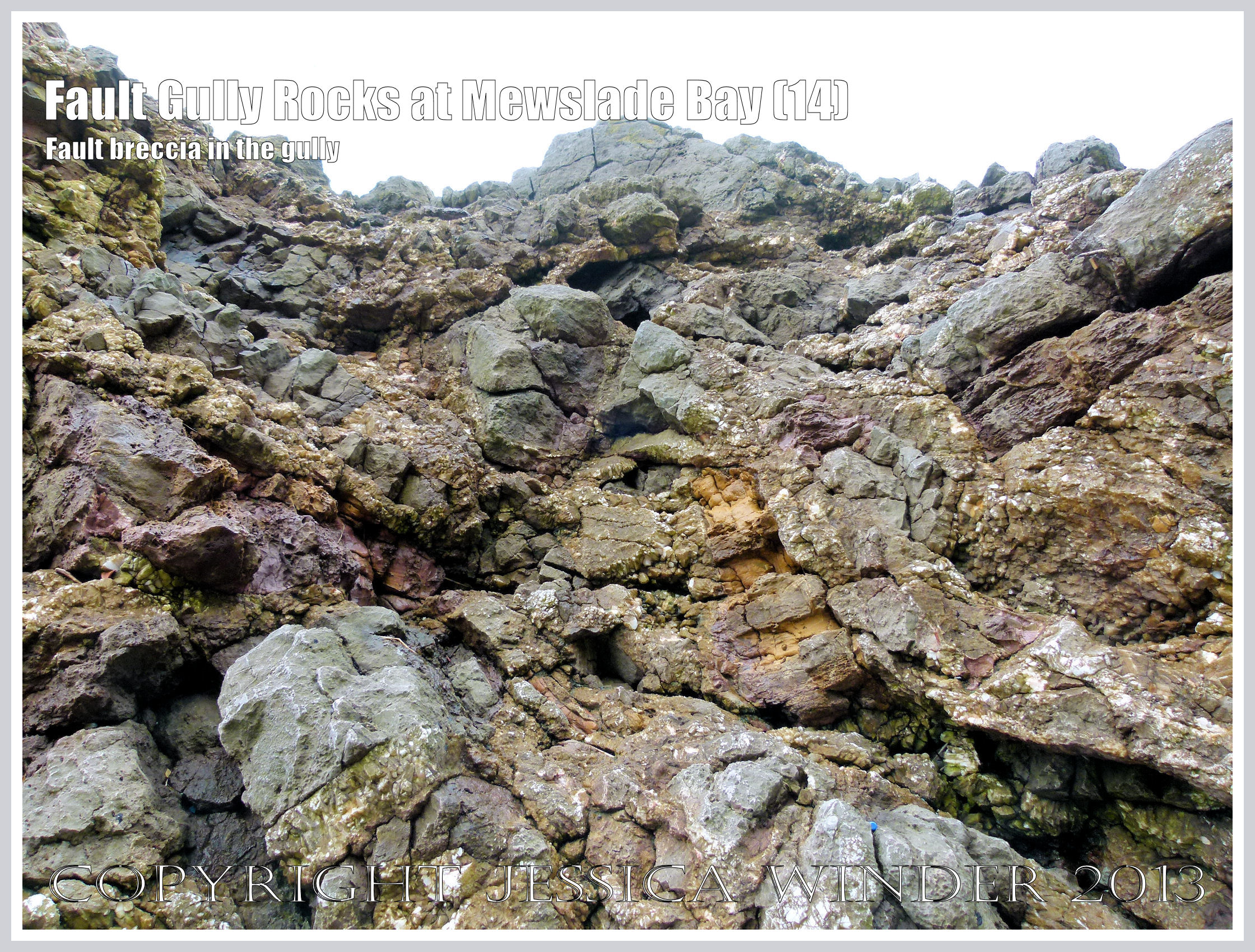 Fault Gully Rocks at Mewslade Bay (14) Fault Gully Rocks at Mewslade Bay (14) – Fault breccia at Mewslade Bay, Gower, South Wales, UK.
