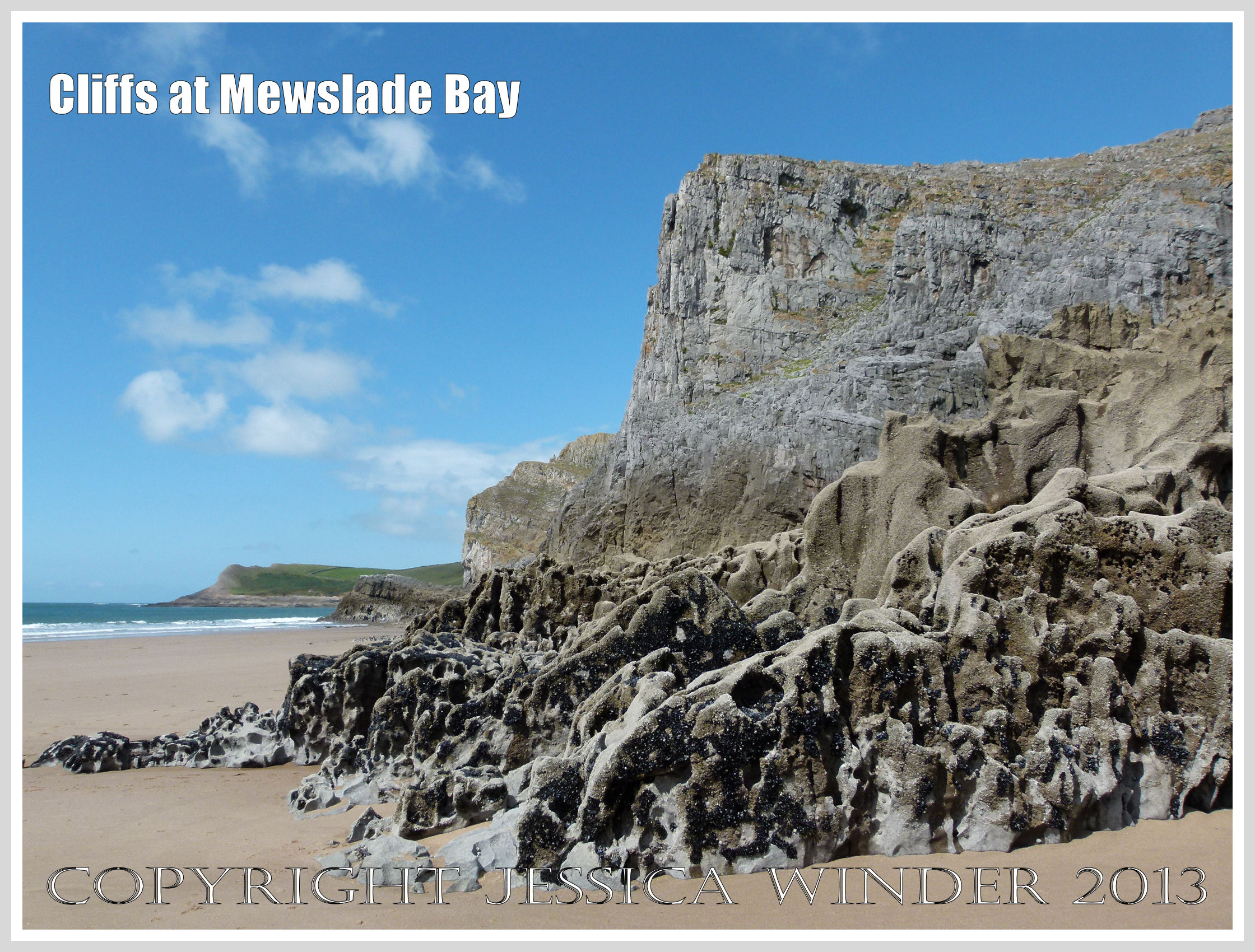 Cliffs at Mewslade Bay (19) Cliffs at Mewslade Bay (19) – Massive High Tor limestone formations at Mewslade Bay, Gower, South Wales.