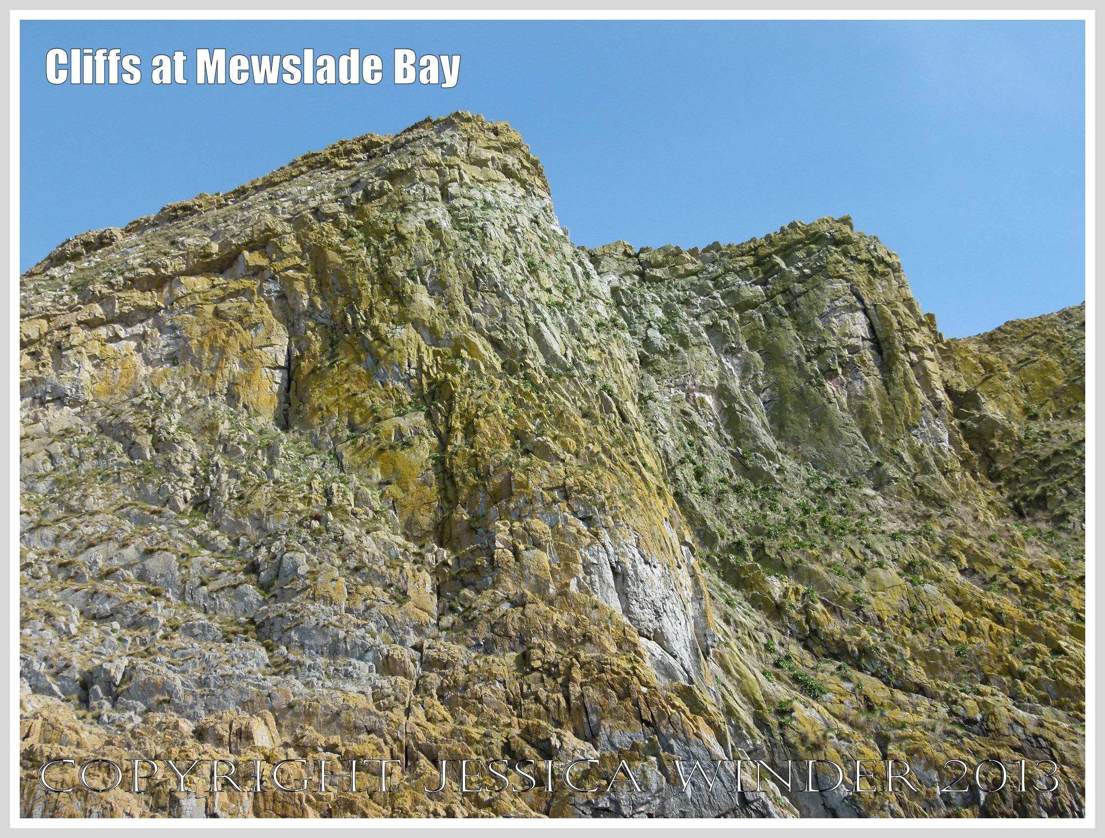 Cliffs at Mewslade Bay (3) – Lofty Heights of Thurba Head on the eastern arm of Mewslade Bay, Gower, South Wales.