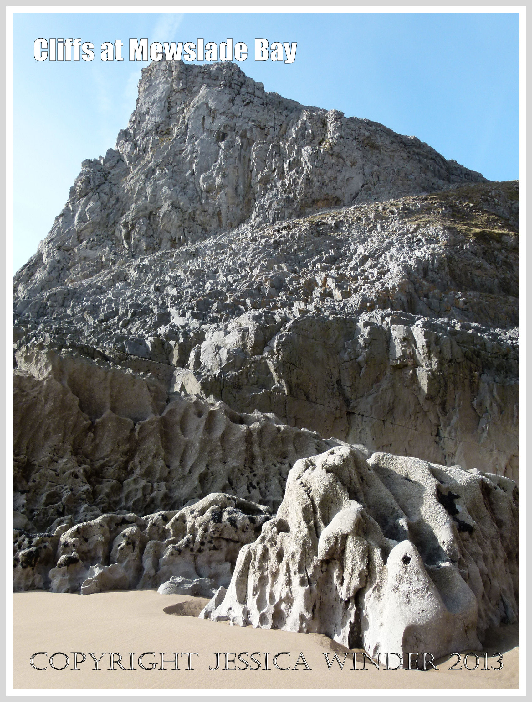Cliffs at Mewslade Bay (12) – Jagged stratified rocks.