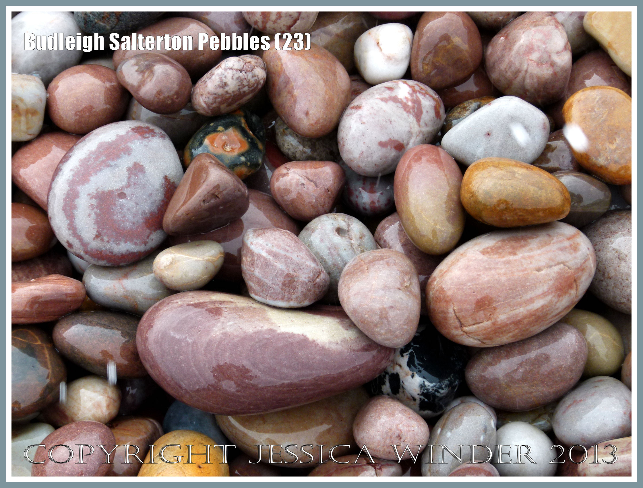 Budleigh Salterton Pebbles (23) Budleigh Salterton Pebbles (23) – Wet pebbles with different colours and patterns on the seashore