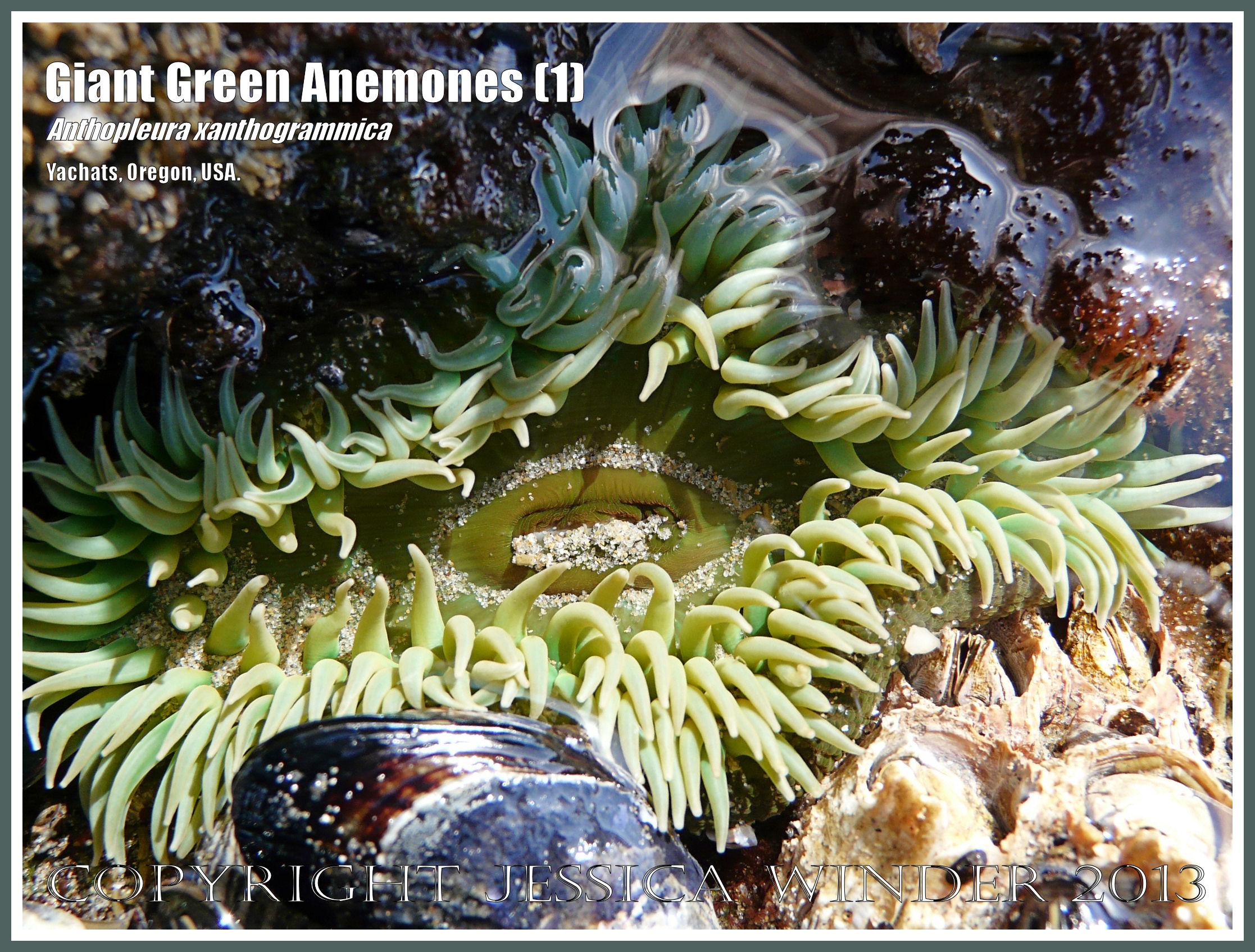 Giant Green Sea Anemones from the Oregon Coast (1) – Anthopleura xanthogrammica in a rock surge gully on the Pacific Northwest Coast at Yachats, Oregon, USA.