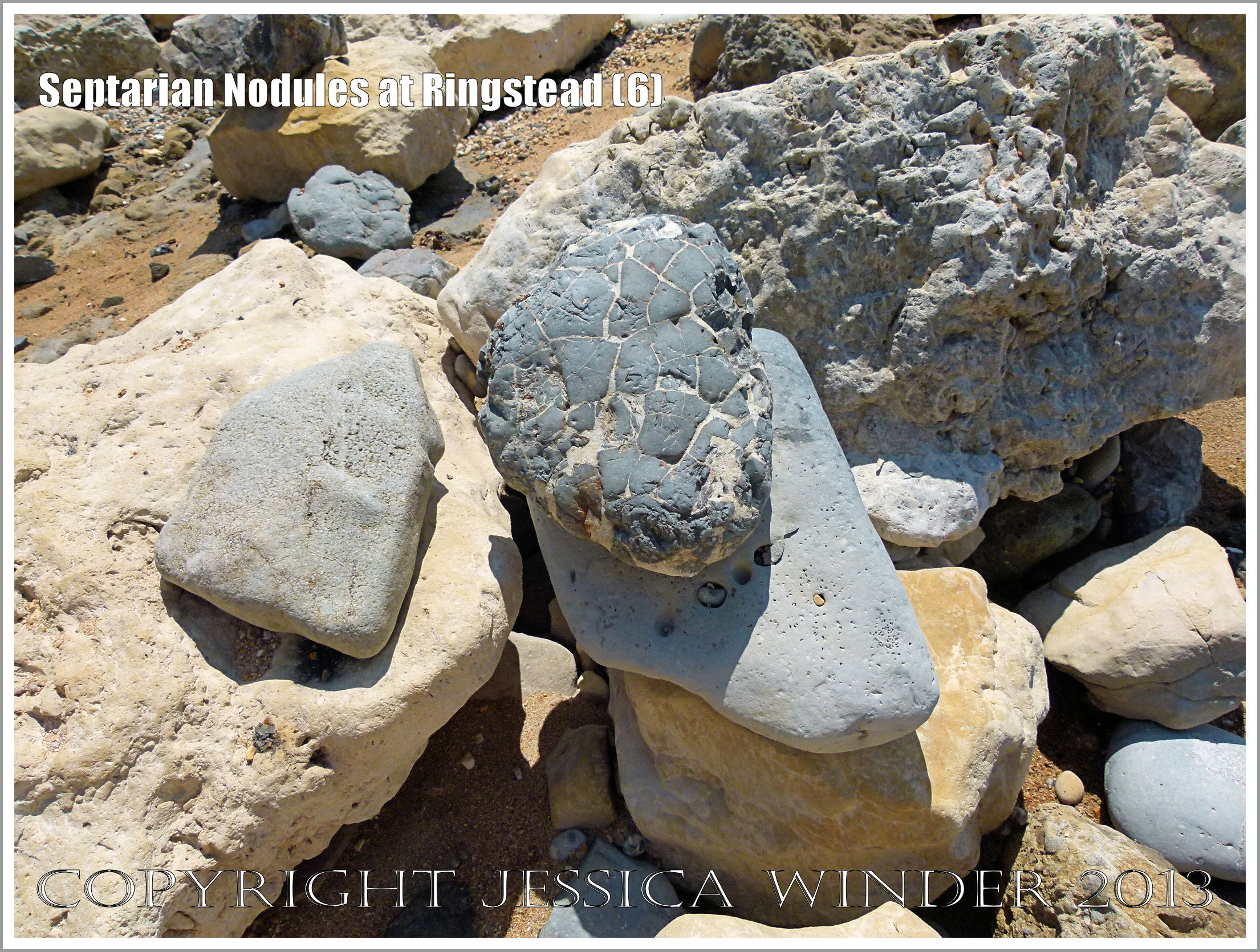 Septarian Nodules at Ringstead (6) Septarian Nodules at Ringstead (6) – Intact septarian nodule on the beach at Ringstead Bay, Dorset, UK.