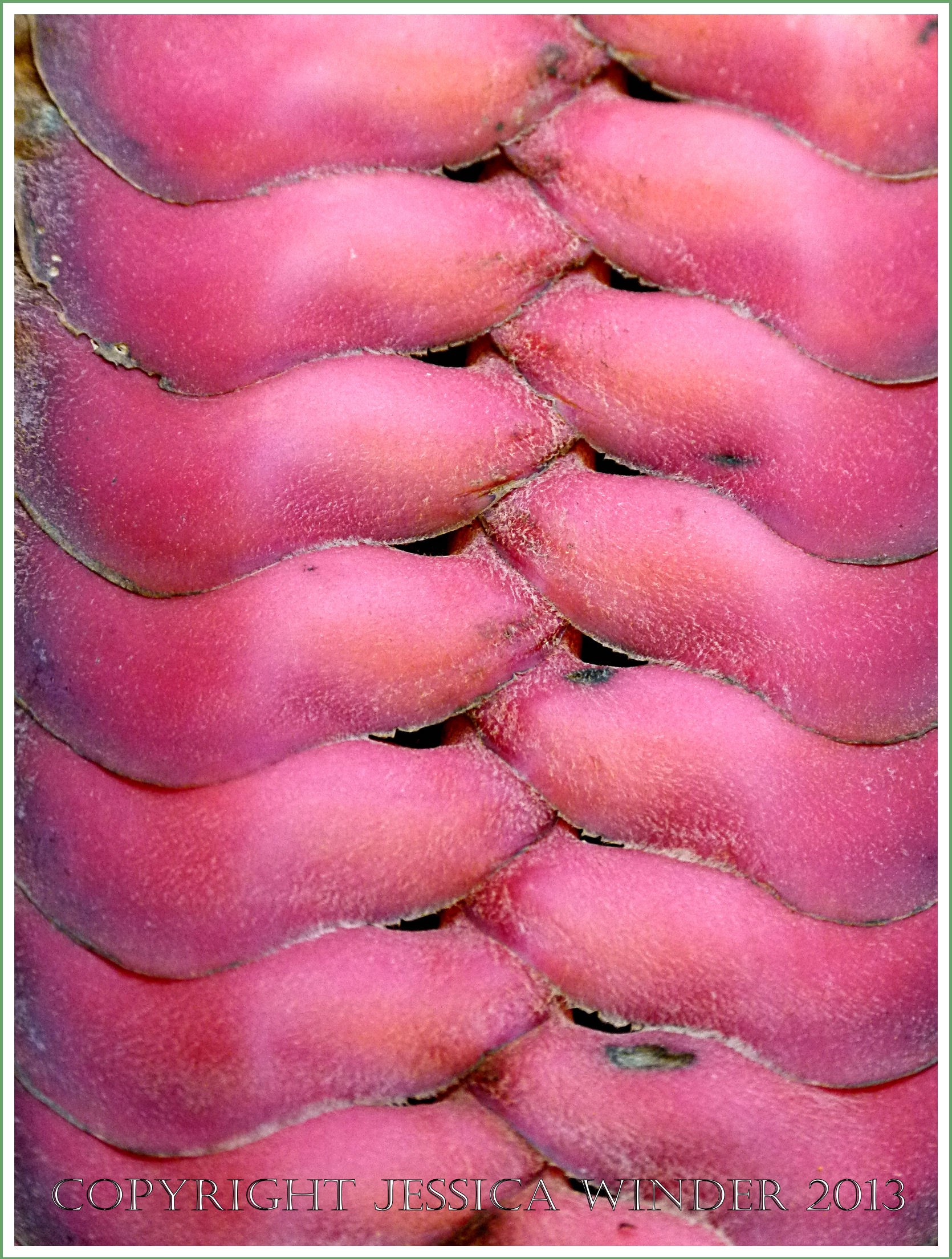 Cairns Botanic Gardens Flowers 1b – Red tropical flowers in bud, probably a type of Heliconia, at Cairns Botanic Gardens in Queensland, Australia.