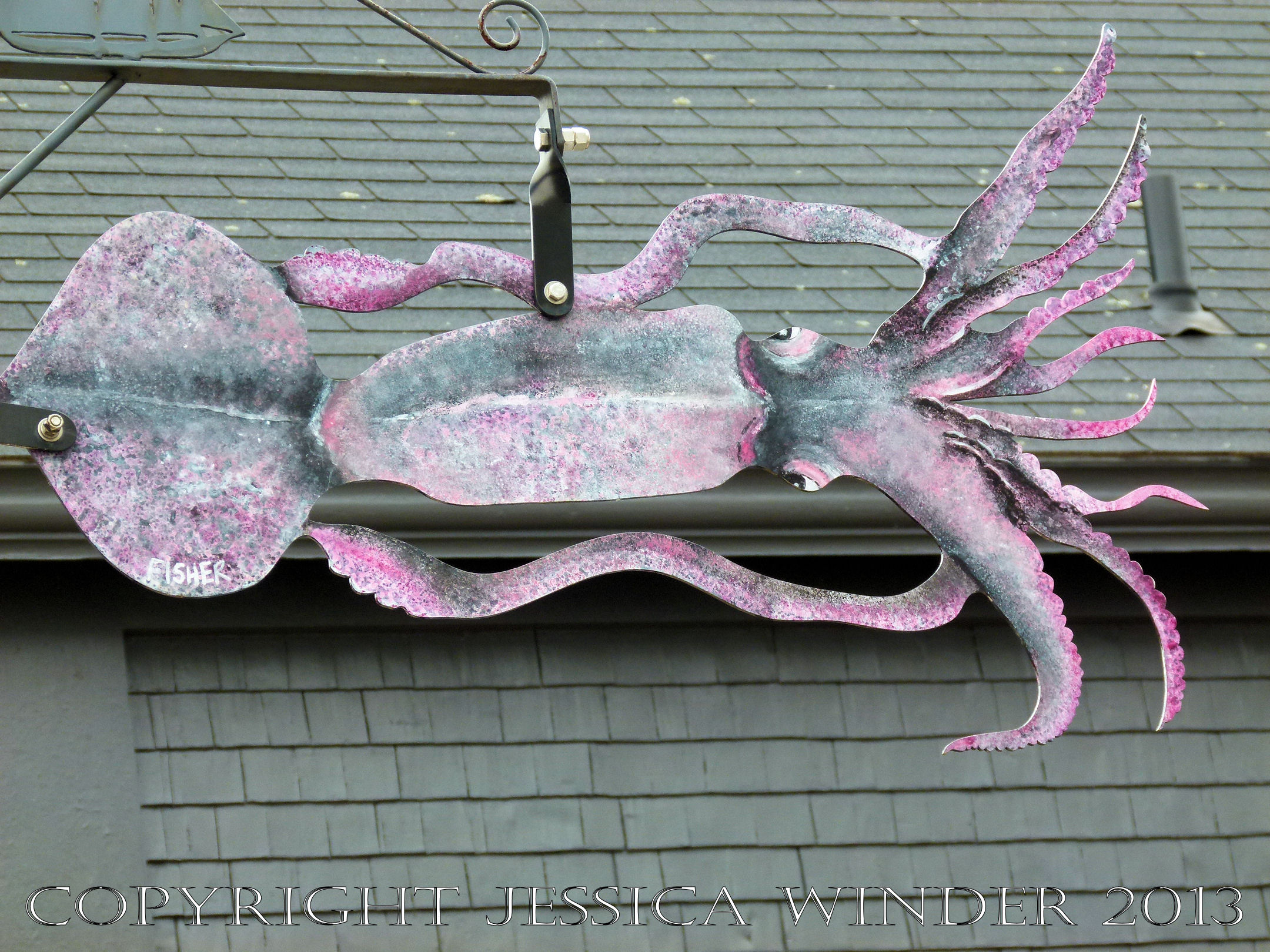 The people of the UNESCO World Heritage Site of Lunenburg, Nova Scotia, in Canada, are proud of their sea-fishing heritage and have decorated the streets with painted metal cut-outs depicting the most commonly caught fish and shellfish – like the squid shown here.