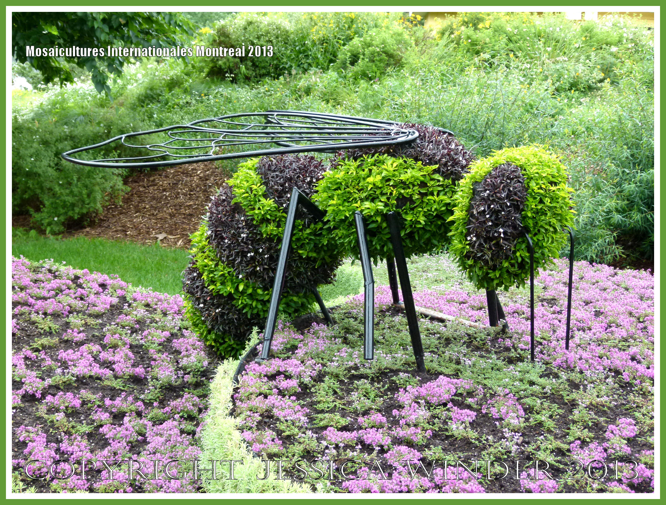 Mosiaculture Bee- Sculpture of a giant bee made from a mosaic of living plants at the Jardins Botanique de Montreal for their Mosaicultures Internationales Montreal 2013 exhibition.