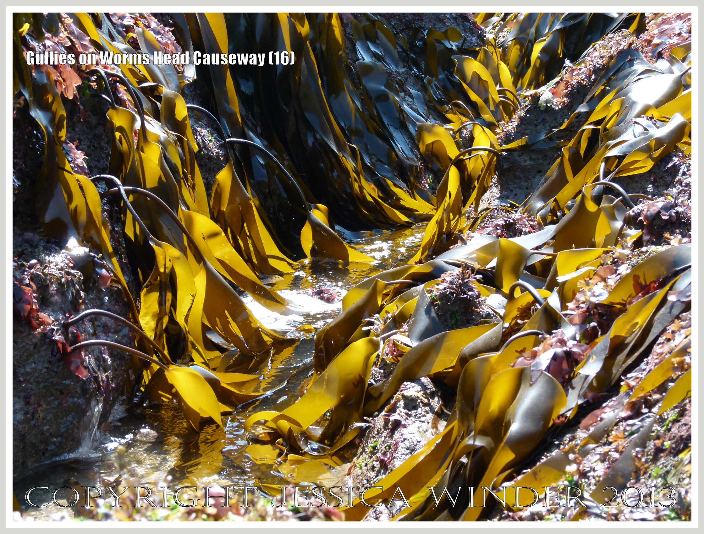 Gullies on Worms Head Causeway 16 – Gully with kelp seaweed in Carboniferous Limestone wave-cut platform called Worms Head Causeway, in Gower, South Wales