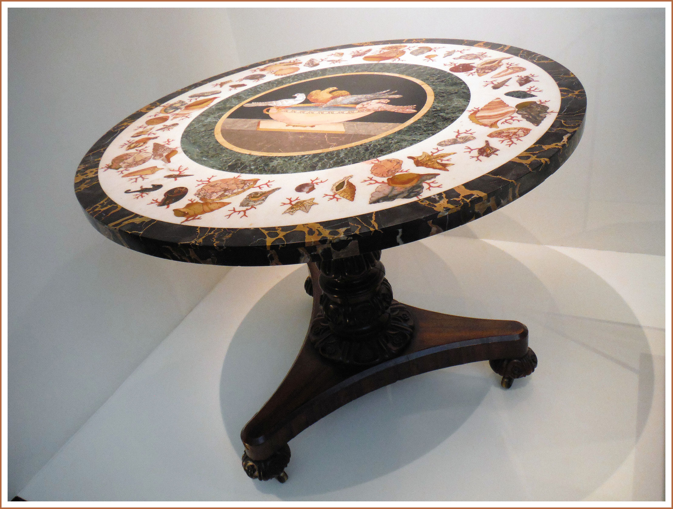 Seashells Made of Stone 5 – Stone seashells decorating a 19th century table top in ‘pietre dure’ style. Made by Florentine workmen using Maltese marble and exhibited in the V&A Museum in London.