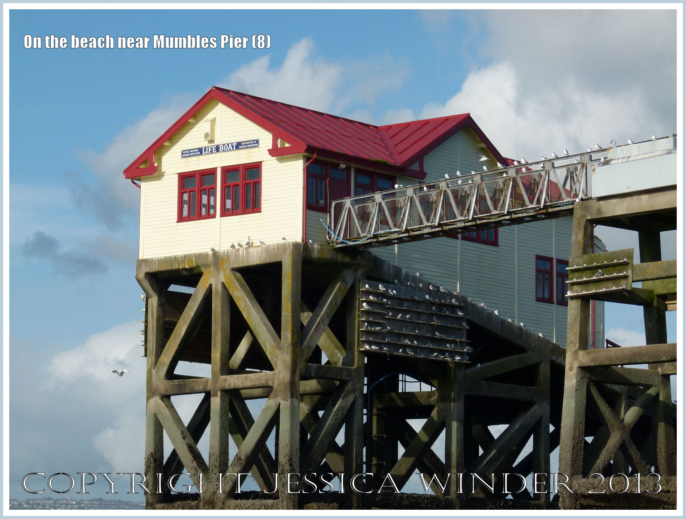 On the beach near Mumbles Pier 8 – View of the old Lifeboat Station with roosting kittiwakes by Mumbles Pier, near Swansea, South Wales.