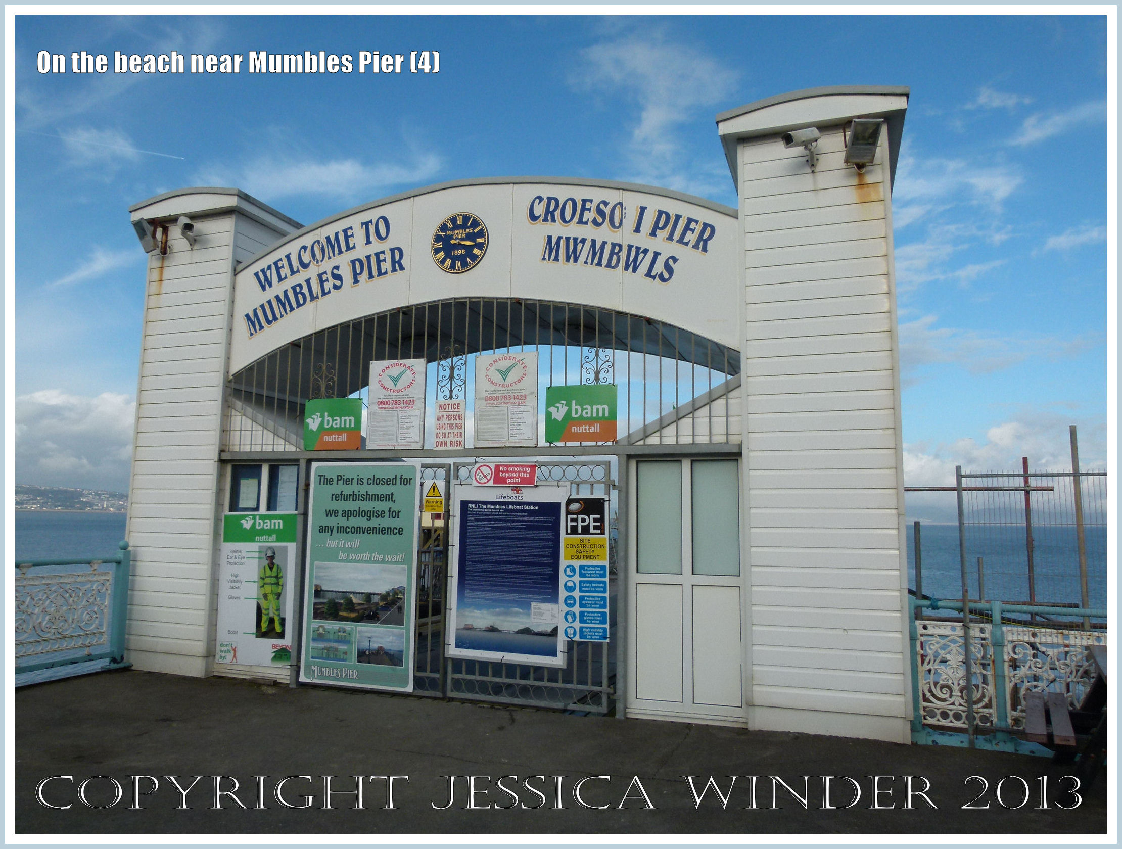On the beach near Mumbles Pier 4 – View of the entrance to Mumbles Pier (which is currently closed for repairs) near Swansea, South Wales..