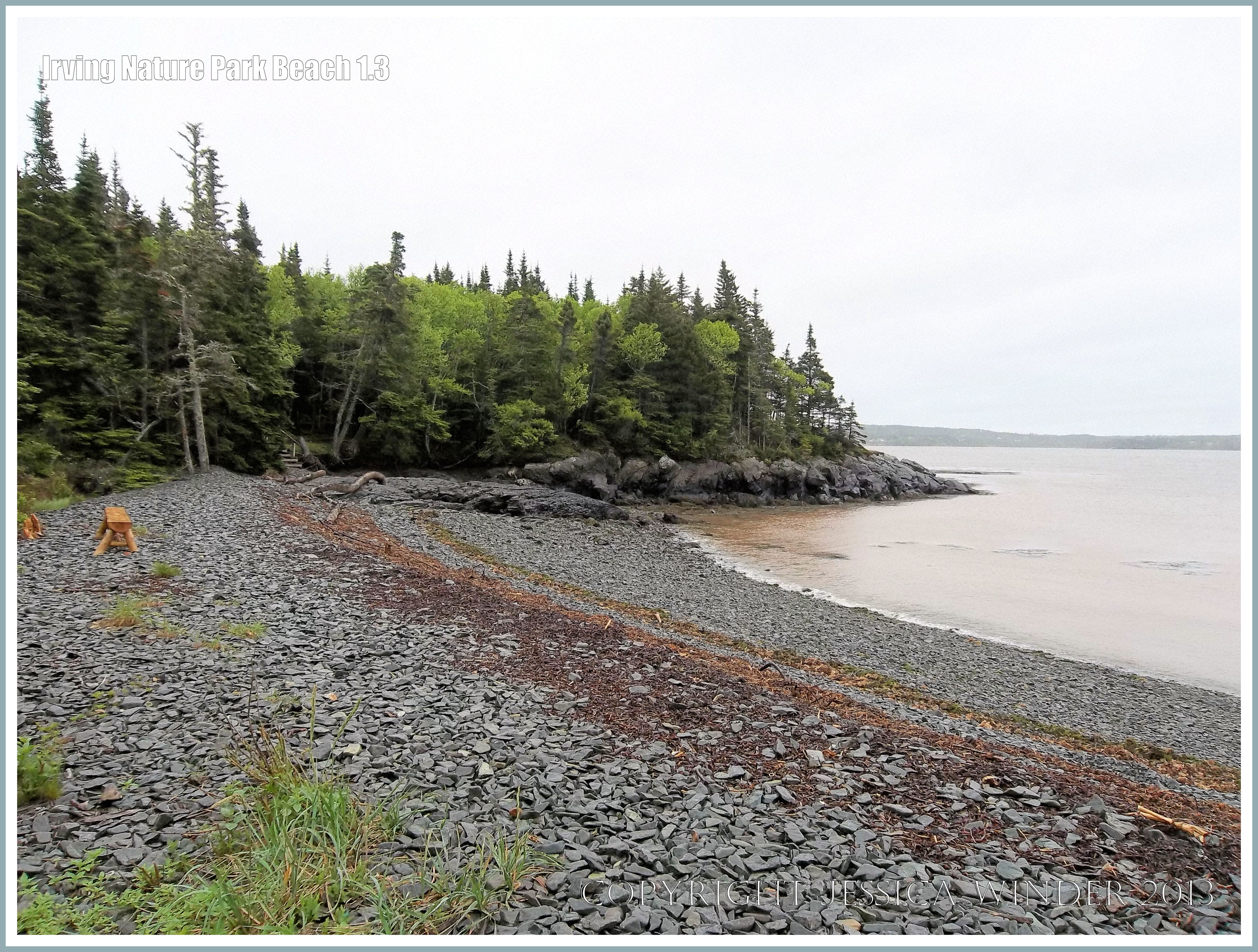 Irving Nature Park Beach 1.3 Irving Nature Park Beach 1.3 – View of a beach at Irving Nature Park, New Brunswick, Canada, looking west.